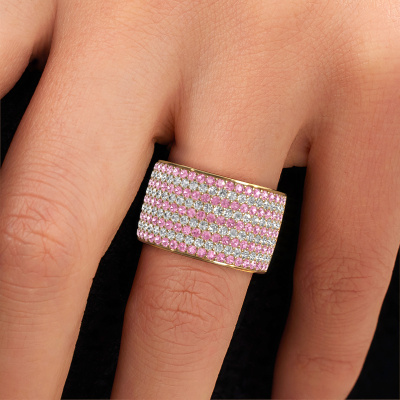 Aufgrund seiner detaillierten Verarbeitung hat dieser Breiter Ring mit Pink Saphir eine stilvolle Erscheinung. Ein Pavé Fassung Ring, der perfekt zu einer modernen Frau passt. Dieser Gold Ring, unser Macy, ist ein echter Hingucker! Sobald wir wissen, was Sie sich wünschen, kreieren wir Ihren Ring in unserem eigenen Atelier. Wir arbeiten mit einem innovativen Verfahren. Wir verwenden eine Kombination aus den neuesten Techniken und alter, traditioneller Handwerkskunst. So können wir perfekt gestaltete Ringe fertigen. Unsere erfahrenen Goldschmiede streben nach Perfektion und werden nicht aufhören, bis ein perfekter Ring für Sie geschaffen ist, ein wahres Kunstwerk. Sobald Sie Ihren Macy Ring mit unserem Online-Tool fertiggestellt haben, beginnen unsere Goldschmiede mit der kreativen Anfertigung Ihres Ringes. Dieser wird mit Leidenschaft und Sorgfalt nach alter Handwerkskunst gefertigt. Darüber arbeiten wir mit ehrlichen Edelsteinen. Einfach online mit unserem Online-Tool anpassen, wenn Sie Änderungen wünschen. Wenn Sie spezielle Änderungen an Ihrem Macy Gold Ring vornehmen möchten, die in unserem Online-Tool nicht verfügbar sind, wenden Sie sich bitte an unsere Experten.Haben Sie ein bestimmtes Budget? Sie können uns gerne kontaktieren, damit wir Ihre Optionen besprechen können. Wir bieten unsere Ringe zum garantiert besten Preis, denn wir fertigen sie auf Bestellung. Solche Preise finden Sie nirgendwo anders!Um es einfacher zu machen, bieten wir eine kostenlose 30-tägige Rücksendung.