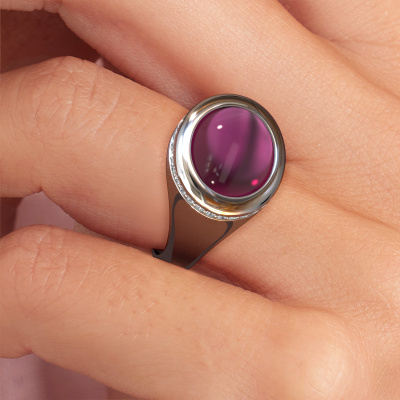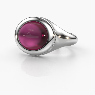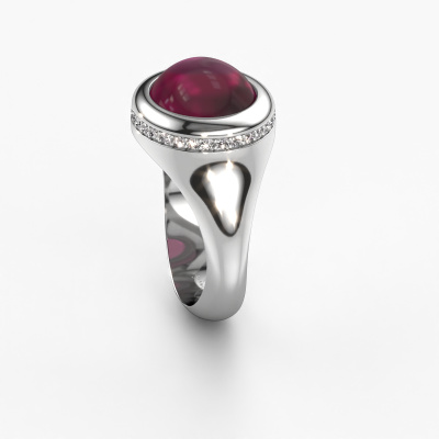 In diesem Foto ist der Platin Lesli OVL Ring mit einem 12x10 mm oval cabochon Rhodolit besetzt. Cabochon bedeutet, dass ein Rhodolit zuerst geformt, nicht facettiert wird. Nämlich in eine bestimmte Form wie einen Tropfen, ein Herz oder ein oval cabochon. Anschließend wird er poliert, bis der Edelstein eine Runde Oberfläche hat. Ein Cabochon-Edelstein ist ein atemberaubender, nobler Blickfang, der perfekt zu einem zeitgenössischen wie auch zu einem Vintage-Stil passt. Unsere erfahrenen Goldschmiede formen den modische Ring bis zur Perfektion und machen ihn einzigartig. Der Cabochon Rhodolit ist so gefasst, dass seine einzigartigen Qualitäten verstärkt werden. Wie gefällt Ihnen dieser moderne Platin Ring? Passen Sie diesen Lesli OVL Ring einfach mit unserem Online-Tool an. Anschließend wird Ihr persönlicher, modische Lesli OVL Ring in Handarbeit von unseren Goldschmieden angefertigt. Edelmetalle und Edelsteine können nach Ihren Wünschen angepasst werden. Haben Sie spezielle Wünsche, die in unserem Online-Tool nicht verfügbar sind? Setzen Sie sich mit uns in Verbindung. Wir passen Ihren persönlichen moderne Ring nach Ihren Wünschen an.Durch die Kombination modernster Technik mit uralter Handwerkskunst können wir alle Ringe in unserem eigenen Studio anfertigen. Jedes Schmuckstück wird auf Anfrage gefertigt. Das ist vorteilhaft, weil wir Ihnen dadurch einen Preis anbieten können, den Sie nirgendwo anders finden.Um es einfacher zu machen, bieten wir eine kostenlose 30-tägige Rücksendung.