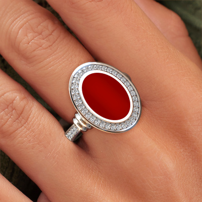 Dieser Platin Siegelring ist ein wahres Kunstwerk! Das ist unser besondere Cristina Siegelring und ist mit 14x10 mm oval form Karneol besetzt. In unserem Studio verwenden wir eine Kombination aus den neuesten Techniken und traditioneller Handwerkskunst, sodass wir einen perfekten Siegelring kreieren können. Unsere erfahrenen Goldschmiede sind fasziniert von Siegelringen. Der Siegelring kann mit Initialen oder einem Familienwappen graviert werden. Siegelringe mit Familienwappen können von Generation zu Generation weitergegeben werden und das ist normalerweise auch der Fall. Obendrein ist ein Siegelring ein schönes, edles Schmuckstück, das wieder im Trend liegt. Mehr als ein Grund, die Tradition zu beginnen oder zu erweitern. Bitte sehen Sie sich unsere Online-Datenbank für weitere Optionen zu Gravuren an. Die verschiedenen Abteilungen innerhalb der Online-Datenbank finden Sie am unteren Rand dieser Seite. Sobald Sie Ihren Cristina Siegelring mit unserem Online-Tool fertiggestellt haben, beginnen unsere Goldschmiede mit der kreativen Anfertigung Ihres Ringes. Dieser wird mit Leidenschaft und Sorgfalt nach alter Handwerkskunst gefertigt. Darüber hinaus sind unsere Edelsteine ehrlich gewonnen. Wenn Sie spezielle Änderungen an Ihrem Cristina Siegelring vornehmen möchten, die in unserem Online-Tool nicht verfügbar sind, wenden Sie sich bitte an unsere Experten.Nach Erhalt Ihrer Bestellung beginnen unsere Goldschmiede mit Leidenschaft den kreativen Prozess und fertigen Ihren Ring in unserem eigenen Studio. Da wir keine großen Lager haben, werden diese Kosten nicht an Sie weitergegeben. Unsere Preisgestaltung ist der Beweis dafür! Wir bieten Schmuck zum niedrigsten Preis, garantiert.Um es einfacher zu machen, bieten wir eine kostenlose 30-tägige Rücksendung.