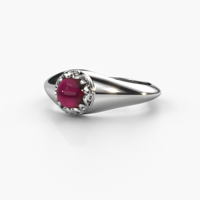In diesem Foto ist der Platin Birgit Ring mit einem 6 mm rund cabochon Granat besetzt. Cabochon bedeutet, dass ein Granat zuerst geformt, nicht facettiert wird. Nämlich in eine bestimmte Form wie einen Tropfen, ein Herz oder ein rund cabochon. Anschließend wird er poliert, bis der Edelstein eine Runde Oberfläche hat. Ein Cabochon-Edelstein ist ein atemberaubender, nobler Blickfang, der perfekt zu einem zeitgenössischen wie auch zu einem Vintage-Stil passt. Unsere erfahrenen Goldschmiede formen den reiche Ring bis zur Perfektion und machen ihn einzigartig. Der Cabochon Granat ist so gefasst, dass seine einzigartigen Qualitäten verstärkt werden. Der reiche Birgit Ring, wie hier abgebildet, kann ganz nach Ihren Wünschen gestaltet werden. Unser Online-Tool bietet viele verschiedene Möglichkeiten. Bitte kontaktieren Sie uns, wenn Sie Änderungen an Ihrem Birgit Ring wünschen, die in unserem Online-Tool nicht verfügbar sind.Da wir unsere eigenen Ringe entwerfen und liefern, können wir Ihnen einen Ring zu einem Preis anbieten, den Sie nirgendwo anders finden. Ein Ring wird auf Bestellung angefertigt, wodurch kein überschüssiges Material anfällt. So können wir Ihnen ein gutes Angebot zum besten Preis machen. Wir verstehen, dass es sich riskant anfühlt, Ihren Ring online zu kaufen. Jedoch helfen wir Ihnen gerne beim Designprozess unter Berücksichtigung Ihres Budgets.Um es einfacher zu machen, bieten wir eine kostenlose 30-tägige Rücksendung.