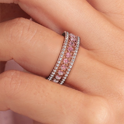 Dieser exklusive Roségold Elizbeth 1 Ring ist ein wahres Kunstwerk! Dieser Ring besteht aus 14 Karat Roségold und ist mit 2 mm rund Turmalin rosa besetzt. Die kleinsten Ornamente werden mit viel Geduld und großer Leidenschaft von unserem Goldschiede gefertigt. Um diesen Ring mit großer Präzision zu schaffen, erfordert dieses Handwerk ein scharfes Auge und eine geschickte Hand. Eine Herausforderung, die bei unseren erfahrenen Goldschmieden eine Leidenschaft entfacht. Die exquisiten Turmalin rosa sind so gesetzt, dass ihre einzigartigen Qualitäten verstärkt werden. Dies verleiht dem Ring eine noch glamouröse Erscheinung. Der Ring ist für sich einzigartig, wegen der natürlichen Edelsteine, die wir speziell für diesen Elizbeth 1 Ring ausgewählt haben. Und indem Sie das Edelmetall selbst auswählen, kreieren Sie einen einzigartigen Ring. Sobald Sie Ihren Elizbeth 1 Ring mit unserem Online-Tool fertiggestellt haben, beginnen unsere Goldschmiede mit der kreativen Anfertigung Ihres Ringes. Dieser wird mit Leidenschaft und Sorgfalt nach alter Handwerkskunst gefertigt. Darüber arbeiten wir mit ehrlichen Edelsteinen. Einfach online mit unserem Online-Tool anpassen, wenn Sie Änderungen wünschen. Wenn Sie spezielle Änderungen an Ihrem Elizbeth 1 Roségold Ring vornehmen möchten, die in unserem Online-Tool nicht verfügbar sind, wenden Sie sich bitte an unsere Experten.Durch die Kombination modernster Technik mit uralter Handwerkskunst können wir alle Ringe in unserem eigenen Studio anfertigen. Jedes Schmuckstück wird auf Anfrage gefertigt. Das ist vorteilhaft, weil wir Ihnen dadurch einen Preis anbieten können, den Sie nirgendwo anders finden.Um es einfacher zu machen, bieten wir eine kostenlose 30-tägige Rücksendung.