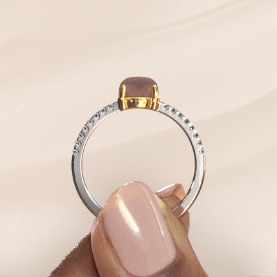 In diesem Foto ist der Weißgold Cathie Ring mit einem 6 mm rund cabochon Rauchquarz besetzt. Cabochon bedeutet, dass ein Rauchquarz zuerst geformt, nicht facettiert wird. Nämlich in eine bestimmte Form wie einen Tropfen, ein Herz oder ein rund cabochon. Anschließend wird er poliert, bis der Edelstein eine Runde Oberfläche hat. Ein Cabochon-Edelstein ist ein atemberaubender, nobler Blickfang, der perfekt zu einem zeitgenössischen wie auch zu einem Vintage-Stil passt. Unsere erfahrenen Goldschmiede formen den Edelsteine Ring bis zur Perfektion und machen ihn einzigartig. Der Cabochon Rauchquarz ist so gefasst, dass seine einzigartigen Qualitäten verstärkt werden. Wie gefällt Ihnen dieser trendige Weißgold Ring? Passen Sie diesen Cathie Ring einfach mit unserem Online-Tool an. Anschließend wird Ihr persönlicher, Edelsteine Cathie Ring in Handarbeit von unseren Goldschmieden angefertigt. Edelmetalle und Edelsteine können nach Ihren Wünschen angepasst werden. Haben Sie spezielle Wünsche, die in unserem Online-Tool nicht verfügbar sind? Setzen Sie sich mit uns in Verbindung. Wir passen Ihren persönlichen trendige Ring nach Ihren Wünschen an.Mit unserer modernen Technik können wir Schmuckstücke von höchster Qualität mit größter Sorgfalt für Sie entwerfen und anpassen. Unsere Ringe sind immer um 30 Prozent günstiger als bei anderen Juwelieren. Wir fertigen Ringe auf Bestellung, also müssen wir keine großen Lager unterhalten. Wenn Sie ein bestimmtes Budget haben, beraten wir Sie gerne entsprechend.Um es einfacher zu machen, bieten wir eine kostenlose 30-tägige Rücksendung.