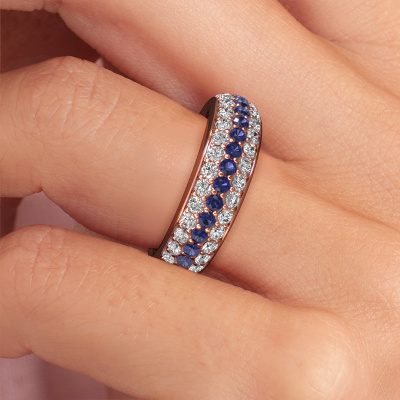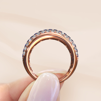 Dieser Ring mit Pavé-Fassung wird Emely 8 genannt. Dieser Ring aus 14 Karat Roségold ist komplett rund mit Saphir 1.9 mm besetzt. Das Band dieses Roségold Ring ist mit Reihen von Saphir besetzt, die weder Anfang noch Ende zu haben scheinen. Unser Goldschiede wählt die Edelsteine sorgfältig aus und setzt sie mit höchster Präzision. Für maximalen Glanz müssen die Saphir perfekt ausgerichtet sein. Beim kunstvollen Fertigen und Polieren des Schmucks wird der Lichteinfall ständig überwacht, bis der Goldschmiedemeister mit dem Ergebnis zufrieden ist. Von Ihnen entworfen, speziell für Sie gefertigt!Der reiche Emely 8 Ring, wie hier abgebildet, kann ganz nach Ihren Wünschen gestaltet werden. Unser Online-Tool bietet viele verschiedene Möglichkeiten. Bitte kontaktieren Sie uns, wenn Sie Änderungen an Ihrem Emely 8 Ring wünschen, die in unserem Online-Tool nicht verfügbar sind.Nach Erhalt Ihrer Bestellung beginnen unsere Goldschmiede mit Leidenschaft den kreativen Prozess und fertigen Ihren Ring in unserem eigenen Studio. Da wir keine großen Lager haben, werden diese Kosten nicht an Sie weitergegeben. Unsere Preisgestaltung ist der Beweis dafür! Wir bieten Schmuck zum niedrigsten Preis, garantiert.Um es einfacher zu machen, bieten wir eine kostenlose 30-tägige Rücksendung.