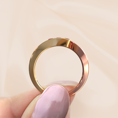 Dieser Ring wird Gracia genannt. Er besteht aus 14 Karat Roségold und ist mit 2.7 mm Rhodolit besetzt. Suchen Sie nach einem einzigartigen Roségold Ring mit modernem Aussehen? Dann ist das der perfekte Ring für Sie. Einfach nach Ihren Wünschen anpassen. Perfekt für eine moderne, zeitgenössische Frau! Dieser geschmacksvolle Ring ist mit atemberaubenden Rhodolit geschmückt. Er wurde sorgfältig ausgewählt, weil Ihr Ring nur mit den schönsten Edelsteinen gekrönt sein soll. Unser erfahrener Goldschiede kreiert Ihren Ring in unserem eigenen Studio, wo der Rhodolit mit großer Sorgfalt gesetzt wird. Der Ring wird dann perfekt poliert, um einen schönen Ring zu erhalten. Haben Sie ein bestimmtes Budget? Sie können uns gerne kontaktieren, damit wir Ihre Optionen besprechen können. Wir bieten unsere Ringe zum garantiert besten Preis, denn wir fertigen sie auf Bestellung. Solche Preise finden Sie nirgendwo anders!Unsere Online-Kollektion wird täglich um neue Schmuckdesigns ergänzt. Unser Team von leidenschaftlichen Designern ist bemüht, außergewöhnliche und vielfältige Designs zu kreieren. Haben Sie einen Ring gesehen, der Ihnen gefällt? Setzen Sie sich mit uns in Verbindung. Basierend auf einem guten Preis/Leistungsverhältnis machen wir Ihnen ein Angebot, das Sie nicht ablehnen können!Um es einfacher zu machen, bieten wir eine kostenlose 30-tägige Rücksendung.