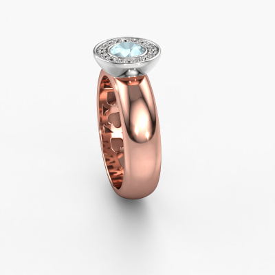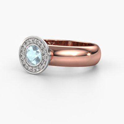 Der oben gezeigte Ring wird Anna genannt. Diese Art von Ring wird als Halo Ring bezeichnet. Der 14 Karat Roségold Ring ist mit einem 5 mm rund Aquamarin als Mittelstein besetzt, umgeben von kleineren Diamanten. Dieser Halo Roségold Halo Ring ist mit einem großen Aquamarin besetzt, umschlossen von kleineren Edelsteinen. Der Ring erhielt seinen Namen wegen seinem Lichthof, den die kleineren Diamanten helfen zu schaffen. Um einen umwerfenden Lichthof zu erhalten, müssen diese kleineren Edelsteine perfekt ausgerichtet sein, damit das Licht aus jedem Blickwinkel gleichmäßig auf den Aquamarin reflektiert wird. Und unsere erfahrenen Goldschmiede erledigen diese Arbeit. Jedes sorgfältig ausgewählte Aquamarin wird von Hand und mit höchster Präzision gesetzt. Während der Herstellung wird der Lichteinfall ständig überwacht, um sicherzustellen, dass der Halo Halo-Effekt noch sichtbar ist. Am Ende erhalten Sie einen einzigartigen Ring mit einem strahlenden Aquamarins Edelstein-Herzstück. Ein wahrlich exquisiter Ring!Der Halo Anna Ring, wie hier abgebildet, kann ganz nach Ihren Wünschen gestaltet werden. Unser Online-Tool bietet viele verschiedene Möglichkeiten. Bitte kontaktieren Sie uns, wenn Sie Änderungen an Ihrem Anna Ring wünschen, die in unserem Online-Tool nicht verfügbar sind.Haben Sie ein bestimmtes Budget? Sie können uns gerne kontaktieren, damit wir Ihre Optionen besprechen können. Wir bieten unsere Ringe zum garantiert besten Preis, denn wir fertigen sie auf Bestellung. Solche Preise finden Sie nirgendwo anders!Um es einfacher zu machen, bieten wir eine kostenlose 30-tägige Rücksendung.