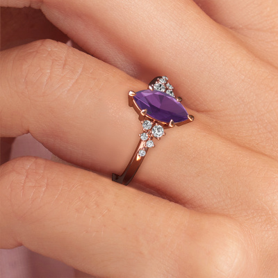 Wie würden Sie Ihren eigenen Stil beschreiben? Suchen Sie nach etwas Einzigartigem? Dieser gewagte Roségold Ring ist erstaunlich! Einfach nach Ihren eigenen Wünschen anpassen. Dieser Royce MRQ Ring wird mit Amethyst besetzt. Diese Amethysten