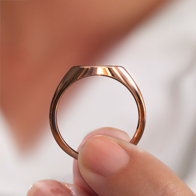 Dieser Roségold Siegelring ist ein wahres Kunstwerk! Das ist unser charmant Rosy Oval 2 Siegelring und ist mit 1.2 mm rund Saphir besetzt. In unserem Studio verwenden wir eine Kombination aus den neuesten Techniken und traditioneller