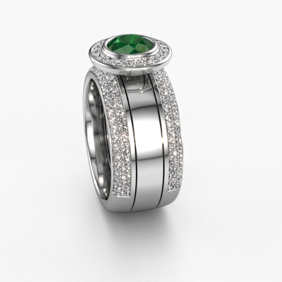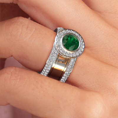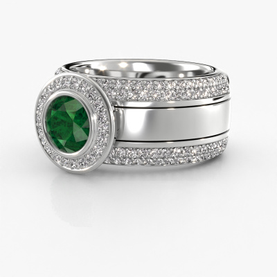 Aufgrund seiner detaillierten Verarbeitung hat dieser Breiter Ring mit Smaragd eine stilvolle Erscheinung. Ein Pavé Fassung Ring, der perfekt zu einer modernen Frau passt. Dieser Platin Ring, unser Roxie, ist ein echter Hingucker! Sobald wir