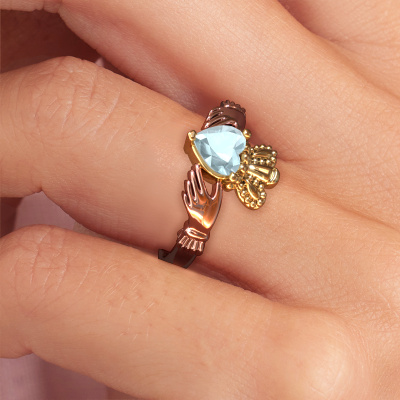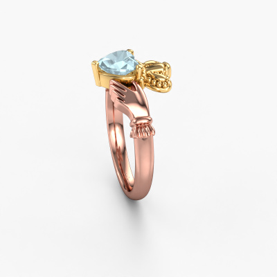 Dieser irische Claddagh Ring ist ein Zeichen der Liebe Set mit 6 mm Herz Aquamarin. Es ist ein bemerkenswerter, symbolischer Ring. Er zeigt ein gekröntes Herz, das von zwei Händen gehalten wird. Das Herz eines Claddagh-Rings ist ein Symbol der Liebe, die Hände repräsentieren Freundschaft und die Krone Loyalität. Ein schönes Schmuckstück zum Schenken oder geschenkt bekommen! Dieser symbolisch 14 Karat Roségold Claddagh 2 Ring wird in unserem eigenen Studio von unseren erfahrenen Goldschmieden in Handarbeit gefertigt. Der symbolisch Claddagh 2 Ring, wie hier abgebildet, kann ganz nach Ihren Wünschen gestaltet werden. Unser Online-Tool bietet viele verschiedene Möglichkeiten. Bitte kontaktieren Sie uns, wenn Sie Änderungen an Ihrem Claddagh 2 Ring wünschen, die in unserem Online-Tool nicht verfügbar sind.Nachdem Sie Ihre Bestellung aufgegeben haben, beginnen unsere Goldschmiede mit dem kreativen Prozess der Herstellung Ihres Claddagh 2 Ring. Wir haben keine Lager. Das ist vorteilhaft, da diese Kosten nicht an Sie weitergegeben werden. Daher sind wir in der Lage, Schmuck zu außergewöhnlich niedrigen Preisen anzubieten.Um es einfacher zu machen, bieten wir eine kostenlose 30-tägige Rücksendung.