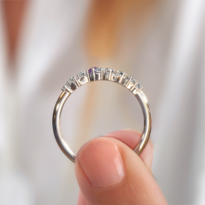 Wie würden Sie Ihren eigenen Stil beschreiben? Suchen Sie nach etwas Einzigartigem? Dieser zierliche Platin Ring ist erstaunlich! Sie können dieser Lexi Ring einfach nach Ihren eigenen Wünschen anpassen. Dieser Ring wird mit Amethyst besetzt. Diese Amethysten wurden sorgfältig ausgewählt, denn Ihr Ring darf nur mit dem schönsten Edelstein gekrönt werden. Sehen Sie das auch so? Unser erfahrener Goldschiede kreiert Ihren Ring in unserem eigenen Studio, wo der Amethyst mit Sorgfalt gesetzt wird. Der Ring wird dann perfekt poliert, um ihm extra Glanz zu verleihen. Es ist ein perfekter Ring für eine Frau mit ausgezeichnetem Geschmack!Sobald Sie Ihren Lexi Ring mit unserem Online-Tool fertiggestellt haben, beginnen unsere Goldschmiede mit der kreativen Anfertigung Ihres Ringes. Dieser wird mit Leidenschaft und Sorgfalt nach alter Handwerkskunst gefertigt. Darüber hinaus sind unsere Edelsteine ehrlich gewonnen. Wenn Sie spezielle Änderungen an Ihrem Lexi Ring vornehmen möchten, die in unserem Online-Tool nicht verfügbar sind, wenden Sie sich bitte an unsere Experten.Mit unserer modernen Technik können wir Schmuckstücke von höchster Qualität mit größter Sorgfalt für Sie entwerfen und anpassen. Unsere Ringe sind immer um 30 Prozent günstiger als bei anderen Juwelieren. Wir fertigen Ringe auf Bestellung, also müssen wir keine großen Lager unterhalten. Wenn Sie ein bestimmtes Budget haben, beraten wir Sie gerne entsprechend.Um es einfacher zu machen, bieten wir eine kostenlose 30-tägige Rücksendung.