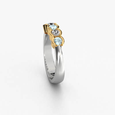Dieser Ring wird Lotte 5 genannt. Er besteht aus 14 Karat Weißgold und ist mit 3 mm Aquamarin besetzt. Suchen Sie nach einem einzigartigen Weißgold Ring mit modernem Aussehen? Dann ist das der perfekte Ring für Sie. Einfach nach Ihren Wünschen anpassen. Perfekt für eine moderne, zeitgenössische Frau! Dieser 5 Stone Ring ist mit atemberaubenden Aquamarin geschmückt. Er wurde sorgfältig ausgewählt, weil Ihr Ring nur mit den schönsten Edelsteinen gekrönt sein soll. Unser erfahrener Goldschiede kreiert Ihren Ring in unserem eigenen Studio, wo der Aquamarin mit großer Sorgfalt gesetzt wird. Der Ring wird dann perfekt poliert, um einen schönen Ring zu erhalten. Durch die Kombination modernster Technik mit uralter Handwerkskunst können wir alle Ringe in unserem eigenen Studio anfertigen. Jedes Schmuckstück wird auf Anfrage gefertigt. Das ist vorteilhaft, weil wir Ihnen dadurch einen Preis anbieten können, den Sie nirgendwo anders finden.Unser Team von talentierten, leidenschaftlichen Designern fügt unserer Online-Kollektion täglich neue Ring-Designs hinzu. Unser Ziel dabei ist es, Ihnen eine große Vielfalt an Schmuckstücken anbieten zu können. Bitte zögern Sie nicht, ein Angebot anzufordern, wenn Sie spezielle Wünsche für Ihren Ring haben. Wir garantieren Ihnen ein Angebot, das Sie nicht ablehnen können.Um es einfacher zu machen, bieten wir eine kostenlose 30-tägige Rücksendung.