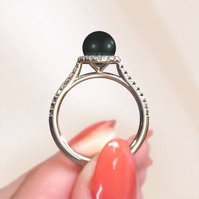 Der oben gezeigte Ring wird Anke genannt. Diese Art von Ring wird als Halo Ring bezeichnet. Der 14 Karat Weißgold Ring ist mit einem 7 mm kugel Schwarz Perle als Mittelstein besetzt, umgeben von kleineren Diamanten. Dieser grazile Weißgold Halo Ring ist mit einem großen Schwarz Perle besetzt, umschlossen von kleineren Edelsteinen. Der Ring erhielt seinen Namen wegen seinem Lichthof, den die kleineren Diamanten helfen zu schaffen. Um einen umwerfenden Lichthof zu erhalten, müssen diese kleineren Edelsteine perfekt ausgerichtet sein, damit das Licht aus jedem Blickwinkel gleichmäßig auf den Schwarz Perle reflektiert wird. Und unsere erfahrenen Goldschmiede erledigen diese Arbeit. Jedes sorgfältig ausgewählte Schwarz Perle wird von Hand und mit höchster Präzision gesetzt. Während der Herstellung wird der Lichteinfall ständig überwacht, um sicherzustellen, dass der grazile Halo-Effekt noch sichtbar ist. Am Ende erhalten Sie einen einzigartigen Ring mit einem strahlenden Schwarze Perle Edelstein-Herzstück. Ein wahrlich exquisiter Ring!Der grazile Anke Ring, wie hier abgebildet, kann ganz nach Ihren Wünschen gestaltet werden. Unser Online-Tool bietet viele verschiedene Möglichkeiten. Bitte kontaktieren Sie uns, wenn Sie Änderungen an Ihrem Anke Ring wünschen, die in unserem Online-Tool nicht verfügbar sind.Durch die Kombination modernster Technik mit uralter Handwerkskunst können wir alle Ringe in unserem eigenen Studio anfertigen. Jedes Schmuckstück wird auf Anfrage gefertigt. Das ist vorteilhaft, weil wir Ihnen dadurch einen Preis anbieten können, den Sie nirgendwo anders finden.Um es einfacher zu machen, bieten wir eine kostenlose 30-tägige Rücksendung.
