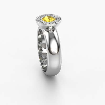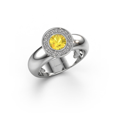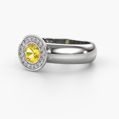 Der oben gezeigte Ring wird Anna genannt. Diese Art von Ring wird als Halo Ring bezeichnet. Der 14 Karat Weißgold Ring ist mit einem 5 mm rund Gelb Saphir als Mittelstein besetzt, umgeben von kleineren Diamanten. Dieser Halo Weißgold Halo Ring ist mit einem großen Gelb Saphir besetzt, umschlossen von kleineren Edelsteinen. Der Ring erhielt seinen Namen wegen seinem Lichthof, den die kleineren Diamanten helfen zu schaffen. Um einen umwerfenden Lichthof zu erhalten, müssen diese kleineren Edelsteine perfekt ausgerichtet sein, damit das Licht aus jedem Blickwinkel gleichmäßig auf den Gelb Saphir reflektiert wird. Und unsere erfahrenen Goldschmiede erledigen diese Arbeit. Jedes sorgfältig ausgewählte Gelb Saphir wird von Hand und mit höchster Präzision gesetzt. Während der Herstellung wird der Lichteinfall ständig überwacht, um sicherzustellen, dass der Halo Halo-Effekt noch sichtbar ist. Am Ende erhalten Sie einen einzigartigen Ring mit einem strahlenden Gelb Saphir Edelstein-Herzstück. Ein wahrlich exquisiter Ring!Der Halo Anna Ring, wie hier abgebildet, kann ganz nach Ihren Wünschen gestaltet werden. Unser Online-Tool bietet viele verschiedene Möglichkeiten. Bitte kontaktieren Sie uns, wenn Sie Änderungen an Ihrem Anna Ring wünschen, die in unserem Online-Tool nicht verfügbar sind.Haben Sie ein bestimmtes Budget? Sie können uns gerne kontaktieren, damit wir Ihre Optionen besprechen können. Wir bieten unsere Ringe zum garantiert besten Preis, denn wir fertigen sie auf Bestellung. Solche Preise finden Sie nirgendwo anders!Um es einfacher zu machen, bieten wir eine kostenlose 30-tägige Rücksendung.