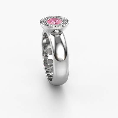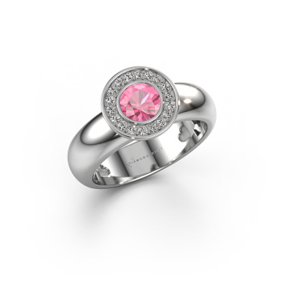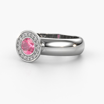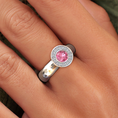 Der oben gezeigte Ring wird Anna genannt. Diese Art von Ring wird als Halo Ring bezeichnet. Der 14 Karat Weißgold Ring ist mit einem 5 mm rund Pink Saphir als Mittelstein besetzt, umgeben von kleineren Diamanten. Dieser Halo Weißgold Halo Ring ist mit einem großen Pink Saphir besetzt, umschlossen von kleineren Edelsteinen. Der Ring erhielt seinen Namen wegen seinem Lichthof, den die kleineren Diamanten helfen zu schaffen. Um einen umwerfenden Lichthof zu erhalten, müssen diese kleineren Edelsteine perfekt ausgerichtet sein, damit das Licht aus jedem Blickwinkel gleichmäßig auf den Pink Saphir reflektiert wird. Und unsere erfahrenen Goldschmiede erledigen diese Arbeit. Jedes sorgfältig ausgewählte Pink Saphir wird von Hand und mit höchster Präzision gesetzt. Während der Herstellung wird der Lichteinfall ständig überwacht, um sicherzustellen, dass der Halo Halo-Effekt noch sichtbar ist. Am Ende erhalten Sie einen einzigartigen Ring mit einem strahlenden Pink Saphir Edelstein-Herzstück. Ein wahrlich exquisiter Ring!Der Halo Anna Ring, wie hier abgebildet, kann ganz nach Ihren Wünschen gestaltet werden. Unser Online-Tool bietet viele verschiedene Möglichkeiten. Bitte kontaktieren Sie uns, wenn Sie Änderungen an Ihrem Anna Ring wünschen, die in unserem Online-Tool nicht verfügbar sind.Haben Sie ein bestimmtes Budget? Sie können uns gerne kontaktieren, damit wir Ihre Optionen besprechen können. Wir bieten unsere Ringe zum garantiert besten Preis, denn wir fertigen sie auf Bestellung. Solche Preise finden Sie nirgendwo anders!Um es einfacher zu machen, bieten wir eine kostenlose 30-tägige Rücksendung.