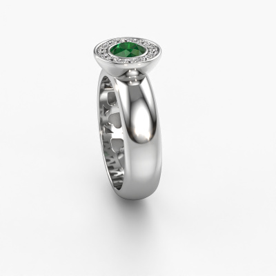 Der oben gezeigte Ring wird Anna genannt. Diese Art von Ring wird als Halo Ring bezeichnet. Der 14 Karat Weißgold Ring ist mit einem 5 mm rund Smaragd als Mittelstein besetzt, umgeben von kleineren Diamanten. Dieser Halo Weißgold Halo Ring ist mit einem großen Smaragd besetzt, umschlossen von kleineren Edelsteinen. Der Ring erhielt seinen Namen wegen seinem Lichthof, den die kleineren Diamanten helfen zu schaffen. Um einen umwerfenden Lichthof zu erhalten, müssen diese kleineren Edelsteine perfekt ausgerichtet sein, damit das Licht aus jedem Blickwinkel gleichmäßig auf den Smaragd reflektiert wird. Und unsere erfahrenen Goldschmiede erledigen diese Arbeit. Jedes sorgfältig ausgewählte Smaragd wird von Hand und mit höchster Präzision gesetzt. Während der Herstellung wird der Lichteinfall ständig überwacht, um sicherzustellen, dass der Halo Halo-Effekt noch sichtbar ist. Am Ende erhalten Sie einen einzigartigen Ring mit einem strahlenden Smaragd Edelstein-Herzstück. Ein wahrlich exquisiter Ring!Der Halo Anna Ring, wie hier abgebildet, kann ganz nach Ihren Wünschen gestaltet werden. Unser Online-Tool bietet viele verschiedene Möglichkeiten. Bitte kontaktieren Sie uns, wenn Sie Änderungen an Ihrem Anna Ring wünschen, die in unserem Online-Tool nicht verfügbar sind.Haben Sie ein bestimmtes Budget? Sie können uns gerne kontaktieren, damit wir Ihre Optionen besprechen können. Wir bieten unsere Ringe zum garantiert besten Preis, denn wir fertigen sie auf Bestellung. Solche Preise finden Sie nirgendwo anders!Um es einfacher zu machen, bieten wir eine kostenlose 30-tägige Rücksendung.