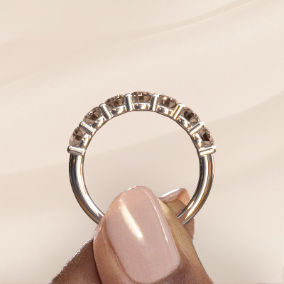 Dieser Ring wird Heddy Half genannt. Er besteht aus 14 Karat Weißgold und ist mit 0.20 crt Braun Diamant besetzt. Suchen Sie nach einem einzigartigen Weißgold Ring mit modernem Aussehen? Dann ist das der perfekte Ring für Sie. Einfach nach Ihren Wünschen anpassen. Perfekt für eine moderne, zeitgenössische Frau! Dieser Memoire Ring ist mit atemberaubenden Braun Diamant geschmückt. Er wurde sorgfältig ausgewählt, weil Ihr Ring nur mit den schönsten Edelsteinen gekrönt sein soll. Unser erfahrener Goldschiede kreiert Ihren Ring in unserem eigenen Studio, wo der Braun Diamant mit großer Sorgfalt gesetzt wird. Der Ring wird dann perfekt poliert, um einen schönen Ring zu erhalten. Haben Sie ein bestimmtes Budget? Sie können uns gerne kontaktieren, damit wir Ihre Optionen besprechen können. Wir bieten unsere Ringe zum garantiert besten Preis, denn wir fertigen sie auf Bestellung. Solche Preise finden Sie nirgendwo anders!Unser Team von talentierten, leidenschaftlichen Designern fügt unserer Online-Kollektion täglich neue Ring-Designs hinzu. Unser Ziel dabei ist es, Ihnen eine große Vielfalt an Schmuckstücken anbieten zu können. Bitte zögern Sie nicht, ein Angebot anzufordern, wenn Sie spezielle Wünsche für Ihren Ring haben. Wir garantieren Ihnen ein Angebot, das Sie nicht ablehnen können.Um es einfacher zu machen, bieten wir eine kostenlose 30-tägige Rücksendung.