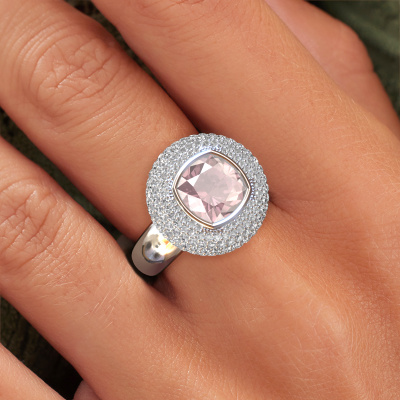 Dieser exklusive Weißgold Keshia Ring ist ein wahres Kunstwerk! Dieser Ring besteht aus 14 Karat Weißgold und ist mit 8 mm cussion Morganit Champagner besetzt. Die kleinsten Ornamente werden mit viel Geduld und großer Leidenschaft von unserem Goldschiede gefertigt. Um diesen Ring mit großer Präzision zu schaffen, erfordert dieses Handwerk ein scharfes Auge und eine geschickte Hand. Eine Herausforderung, die bei unseren erfahrenen Goldschmieden eine Leidenschaft entfacht. Die exquisiten Morganit Champagner sind so gesetzt, dass ihre einzigartigen Qualitäten verstärkt werden. Dies verleiht dem Ring eine noch glamouröse Erscheinung. Der Ring ist für sich einzigartig, wegen der natürlichen Edelsteine, die wir speziell für diesen Keshia Ring ausgewählt haben. Und indem Sie das Edelmetall selbst auswählen, kreieren Sie einen einzigartigen Ring. Unsere Goldschmiede kreieren Ihren individuellen Ring leidenschaftlich, mit größter Sorgfalt und nach Ihren Wünschen. Das Weißgold Ring, wie hier abgebildet, kann mit unserem Online-Tool individuell angepasst werden. Bitte fragen Sie unsere Schmuckdesigner um Hilfe, wenn Sie Änderungen wünsche, die in unserem Online-Tool nicht verfügbar sind. Gerne beantworten wir Ihnen alle offenen Fragen.Mit unserer modernen Technik können wir Schmuckstücke von höchster Qualität mit größter Sorgfalt für Sie entwerfen und anpassen. Unsere Ringe sind immer um 30 Prozent günstiger als bei anderen Juwelieren. Wir fertigen Ringe auf Bestellung, also müssen wir keine großen Lager unterhalten. Wenn Sie ein bestimmtes Budget haben, beraten wir Sie gerne entsprechend.Um es einfacher zu machen, bieten wir eine kostenlose 30-tägige Rücksendung.