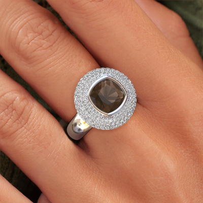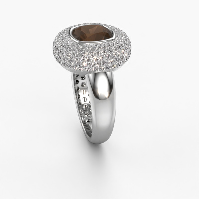 Dieser exklusive Weißgold Keshia Ring ist ein wahres Kunstwerk! Dieser Ring besteht aus 14 Karat Weißgold und ist mit 8 mm cussion Rauchquarz besetzt. Die kleinsten Ornamente werden mit viel Geduld und großer Leidenschaft von unserem Goldschiede gefertigt. Um diesen Ring mit großer Präzision zu schaffen, erfordert dieses Handwerk ein scharfes Auge und eine geschickte Hand. Eine Herausforderung, die bei unseren erfahrenen Goldschmieden eine Leidenschaft entfacht. Die exquisiten Rauchquarz sind so gesetzt, dass ihre einzigartigen Qualitäten verstärkt werden. Dies verleiht dem Ring eine noch glamouröse Erscheinung. Der Ring ist für sich einzigartig, wegen der natürlichen Edelsteine, die wir speziell für diesen Keshia Ring ausgewählt haben. Und indem Sie das Edelmetall selbst auswählen, kreieren Sie einen einzigartigen Ring. Unsere Goldschmiede kreieren Ihren individuellen Ring leidenschaftlich, mit größter Sorgfalt und nach Ihren Wünschen. Das Weißgold Ring, wie hier abgebildet, kann mit unserem Online-Tool individuell angepasst werden. Bitte fragen Sie unsere Schmuckdesigner um Hilfe, wenn Sie Änderungen wünsche, die in unserem Online-Tool nicht verfügbar sind. Gerne beantworten wir Ihnen alle offenen Fragen.Mit unserer modernen Technik können wir Schmuckstücke von höchster Qualität mit größter Sorgfalt für Sie entwerfen und anpassen. Unsere Ringe sind immer um 30 Prozent günstiger als bei anderen Juwelieren. Wir fertigen Ringe auf Bestellung, also müssen wir keine großen Lager unterhalten. Wenn Sie ein bestimmtes Budget haben, beraten wir Sie gerne entsprechend.Um es einfacher zu machen, bieten wir eine kostenlose 30-tägige Rücksendung.