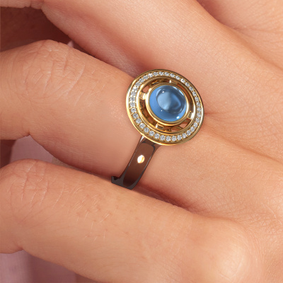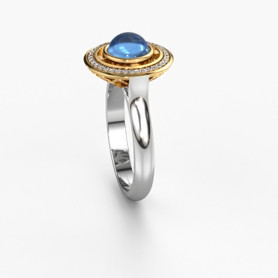 In diesem Foto ist der Weißgold Salima Ring mit einem 6 mm rund cabochon Blau Topas besetzt. Cabochon bedeutet, dass ein Blau Topas zuerst geformt, nicht facettiert wird. Nämlich in eine bestimmte Form wie einen Tropfen, ein Herz oder ein rund cabochon. Anschließend wird er poliert, bis der Edelstein eine Runde Oberfläche hat. Ein Cabochon-Edelstein ist ein atemberaubender, nobler Blickfang, der perfekt zu einem zeitgenössischen wie auch zu einem Vintage-Stil passt. Unsere erfahrenen Goldschmiede formen den besondere Ring bis zur Perfektion und machen ihn einzigartig. Der Cabochon Blau Topas ist so gefasst, dass seine einzigartigen Qualitäten verstärkt werden. Wie gefällt Ihnen dieser design Weißgold Ring? Passen Sie diesen Salima Ring einfach mit unserem Online-Tool an. Anschließend wird Ihr persönlicher, besondere Salima Ring in Handarbeit von unseren Goldschmieden angefertigt. Edelmetalle und Edelsteine können nach Ihren Wünschen angepasst werden. Haben Sie spezielle Wünsche, die in unserem Online-Tool nicht verfügbar sind? Setzen Sie sich mit uns in Verbindung. Wir passen Ihren persönlichen design Ring nach Ihren Wünschen an.Nach Erhalt Ihrer Bestellung beginnen unsere Goldschmiede mit Leidenschaft den kreativen Prozess und fertigen Ihren Ring in unserem eigenen Studio. Da wir keine großen Lager haben, werden diese Kosten nicht an Sie weitergegeben. Unsere Preisgestaltung ist der Beweis dafür! Wir bieten Schmuck zum niedrigsten Preis, garantiert.Um es einfacher zu machen, bieten wir eine kostenlose 30-tägige Rücksendung.