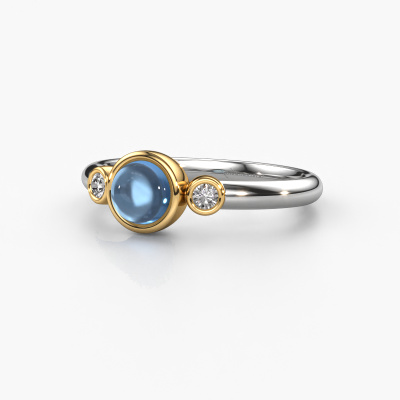 In diesem Foto ist der Weißgold Muriel Ring mit einem 5 mm rund cabochon Blau Topas besetzt. Cabochon bedeutet, dass ein Blau Topas zuerst geformt, nicht facettiert wird. Nämlich in eine bestimmte Form wie einen Tropfen, ein Herz oder ein rund cabochon. Anschließend wird er poliert, bis der Edelstein eine Runde Oberfläche hat. Ein Cabochon-Edelstein ist ein atemberaubender, nobler Blickfang, der perfekt zu einem zeitgenössischen wie auch zu einem Vintage-Stil passt. Unsere erfahrenen Goldschmiede formen den geschmacksvolle Ring bis zur Perfektion und machen ihn einzigartig. Der Cabochon Blau Topas ist so gefasst, dass seine einzigartigen Qualitäten verstärkt werden. Der geschmacksvolle Muriel Ring, wie hier abgebildet, kann ganz nach Ihren Wünschen gestaltet werden. Unser Online-Tool bietet viele verschiedene Möglichkeiten. Bitte kontaktieren Sie uns, wenn Sie Änderungen an Ihrem Muriel Ring wünschen, die in unserem Online-Tool nicht verfügbar sind.Durch die Kombination modernster Technik mit uralter Handwerkskunst können wir alle Ringe in unserem eigenen Studio anfertigen. Jedes Schmuckstück wird auf Anfrage gefertigt. Das ist vorteilhaft, weil wir Ihnen dadurch einen Preis anbieten können, den Sie nirgendwo anders finden.Um es einfacher zu machen, bieten wir eine kostenlose 30-tägige Rücksendung.