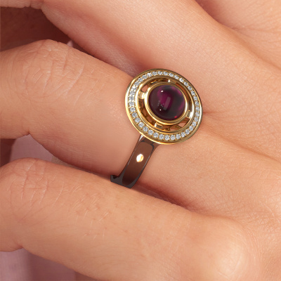 In diesem Foto ist der Weißgold Salima Ring mit einem 6 mm rund cabochon Granat besetzt. Cabochon bedeutet, dass ein Granat zuerst geformt, nicht facettiert wird. Nämlich in eine bestimmte Form wie einen Tropfen, ein Herz oder ein rund cabochon. Anschließend wird er poliert, bis der Edelstein eine Runde Oberfläche hat. Ein Cabochon-Edelstein ist ein atemberaubender, nobler Blickfang, der perfekt zu einem zeitgenössischen wie auch zu einem Vintage-Stil passt. Unsere erfahrenen Goldschmiede formen den besondere Ring bis zur Perfektion und machen ihn einzigartig. Der Cabochon Granat ist so gefasst, dass seine einzigartigen Qualitäten verstärkt werden. Wie gefällt Ihnen dieser design Weißgold Ring? Passen Sie diesen Salima Ring einfach mit unserem Online-Tool an. Anschließend wird Ihr persönlicher, besondere Salima Ring in Handarbeit von unseren Goldschmieden angefertigt. Edelmetalle und Edelsteine können nach Ihren Wünschen angepasst werden. Haben Sie spezielle Wünsche, die in unserem Online-Tool nicht verfügbar sind? Setzen Sie sich mit uns in Verbindung. Wir passen Ihren persönlichen design Ring nach Ihren Wünschen an.Nach Erhalt Ihrer Bestellung beginnen unsere Goldschmiede mit Leidenschaft den kreativen Prozess und fertigen Ihren Ring in unserem eigenen Studio. Da wir keine großen Lager haben, werden diese Kosten nicht an Sie weitergegeben. Unsere Preisgestaltung ist der Beweis dafür! Wir bieten Schmuck zum niedrigsten Preis, garantiert.Um es einfacher zu machen, bieten wir eine kostenlose 30-tägige Rücksendung.