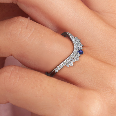 Dieser Nica B Vorsteckring in 14 Karat Weißgold ist mit Saphir besetzt. Dieser Weißgold Nica B Ring ist die perfekte Ergänzung zu Ihrer Ring-Kollektion! Wie der Name schon sagt, ist es ein Ring, der an einem Finger mit einem anderen Ring kombiniert werden kann. Das gibt Ihnen die Möglichkeit, Ihren eigenen Stil zu schaffen. Ein Vorsteckring repräsentiert normalerweise eine bestimmte Erinnerung an jemand Besonderen, oder an einen denkwürdigen Moment. Es ist üblich, einen Vorsteckring, welcher ein Jubiläum darstellt, mit einem Trauring zu kombinieren. Aber dieser modische Ring, kombiniert mit Ihren anderen Ringen, ist auch ein klassisches Modeobjekt. Der modische Nica B Vorsteckring, wie hier abgebildet, kann ganz nach Ihren Wünschen gestaltet werden. Unser Online-Tool bietet viele verschiedene Möglichkeiten. Bitte kontaktieren Sie uns, wenn Sie Änderungen an Ihrem Nica B Vorsteckring wünschen, die in unserem Online-Tool nicht verfügbar sind.Mit unserer modernen Technik können wir Schmuckstücke von höchster Qualität mit größter Sorgfalt für Sie entwerfen und anpassen. Unsere Ringe sind immer um 30 Prozent günstiger als bei anderen Juwelieren. Wir fertigen Ringe auf Bestellung, also müssen wir keine großen Lager unterhalten. Wenn Sie ein bestimmtes Budget haben, beraten wir Sie gerne entsprechend.Um es einfacher zu machen, bieten wir eine kostenlose 30-tägige Rücksendung.
