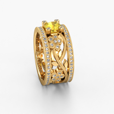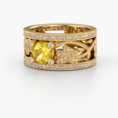 Haben Sie einen Vintage-Fetisch? Dann passt dieser Gold Ring perfekt zu Ihnen. Er hat ein zeitgemäßes Design, basierend auf klassischen Designs. Ein leicht romantisches, außergewöhnliches Design! Sogar noch mehr, wenn Sie ihn nach Ihren Wünschen anpassen. Dieser zierliche Severine Ring ist mit exquisiten Gelb Saphir besetzt. Wie Sie sehen können, können Sie einfach einen Edelstein wählen, der zu Ihrem Stil passt. Jeder Edelstein wird sorgfältig von unseren Händlern ausgewählt, die auf der ganzen Welt verteilt sind. Nichts als die besten Edelsteine für unseren erfahrenen Goldschiede! Schließlich ist es seine Krönung!Unsere Goldschmiede kreieren Ihren individuellen Ring leidenschaftlich, mit größter Sorgfalt und nach Ihren Wünschen. Das Gold Ring, wie hier abgebildet, kann mit unserem Online-Tool individuell angepasst werden. Bitte fragen Sie unsere Schmuckdesigner um Hilfe, wenn Sie Änderungen wünsche, die in unserem Online-Tool nicht verfügbar sind. Gerne beantworten wir Ihnen alle offenen Fragen.Nach Erhalt Ihrer Bestellung beginnen unsere Goldschmiede mit Leidenschaft den kreativen Prozess und fertigen Ihren Ring in unserem eigenen Studio. Da wir keine großen Lager haben, werden diese Kosten nicht an Sie weitergegeben. Unsere Preisgestaltung ist der Beweis dafür! Wir bieten Schmuck zum niedrigsten Preis, garantiert.Um es einfacher zu machen, bieten wir eine kostenlose 30-tägige Rücksendung.
