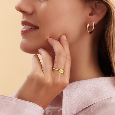 Dieser Ring namens Anouk besteht aus 14 Karat Gold und ist mit gelber Labor Diamant besetzt. Sind Sie auf der Suche nach einem einzigartigen Gold Ring mit moderner Note? Dann könnte dieser Ring zu Ihnen passen. Einfach nach Ihren Wünschen anpassen. Er passt zur zeitgenössischen, modernen Frau. Dieser zierliche Ring ist mit wunderschönen gelber Labor Diamanten besetzt. Er wurde sorgfältig ausgewählt. Weil Ihr Ring mit nichts als dem atemberaubendsten Edelstein gekrönt werden soll. Unser erfahrener Goldschiede kreiert Ihren Ring in unserem eigenen Studio, wo der gelber Labor Diamant mit großer Sorgfalt gesetzt wird. Der Ring wird dann perfekt poliert, um einen atemberaubenden Ring zu erhalten. Durch die Kombination modernster Technik mit uralter Handwerkskunst können wir alle Ringe in unserem eigenen Studio anfertigen. Jedes Schmuckstück wird auf Anfrage gefertigt. Das ist vorteilhaft, weil wir Ihnen dadurch einen Preis anbieten können, den Sie nirgendwo anders finden.Unser Team von talentierten, leidenschaftlichen Designern fügt unserer Online-Kollektion täglich neue Ring-Designs hinzu. Unser Ziel dabei ist es, Ihnen eine große Vielfalt an Schmuckstücken anbieten zu können. Bitte zögern Sie nicht, ein Angebot anzufordern, wenn Sie spezielle Wünsche für Ihren Ring haben. Wir garantieren Ihnen ein Angebot, das Sie nicht ablehnen können.Um es einfacher zu machen, bieten wir eine kostenlose 30-tägige Rücksendung.