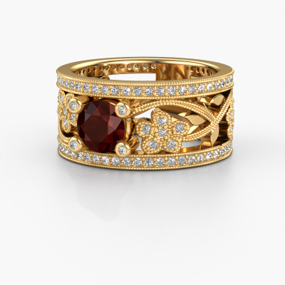 Haben Sie einen Vintage-Fetisch? Dann passt dieser Gold Ring perfekt zu Ihnen. Er hat ein zeitgemäßes Design, basierend auf klassischen Designs. Ein leicht romantisches, außergewöhnliches Design! Sogar noch mehr, wenn Sie ihn nach Ihren Wünschen anpassen. Dieser zierliche Severine Ring ist mit exquisiten Granat besetzt. Wie Sie sehen können, können Sie einfach einen Edelstein wählen, der zu Ihrem Stil passt. Jeder Edelstein wird sorgfältig von unseren Händlern ausgewählt, die auf der ganzen Welt verteilt sind. Nichts als die besten Edelsteine für unseren erfahrenen Goldschiede! Schließlich ist es seine Krönung!Unsere Goldschmiede kreieren Ihren individuellen Ring leidenschaftlich, mit größter Sorgfalt und nach Ihren Wünschen. Das Gold Ring, wie hier abgebildet, kann mit unserem Online-Tool individuell angepasst werden. Bitte fragen Sie unsere Schmuckdesigner um Hilfe, wenn Sie Änderungen wünsche, die in unserem Online-Tool nicht verfügbar sind. Gerne beantworten wir Ihnen alle offenen Fragen.Nach Erhalt Ihrer Bestellung beginnen unsere Goldschmiede mit Leidenschaft den kreativen Prozess und fertigen Ihren Ring in unserem eigenen Studio. Da wir keine großen Lager haben, werden diese Kosten nicht an Sie weitergegeben. Unsere Preisgestaltung ist der Beweis dafür! Wir bieten Schmuck zum niedrigsten Preis, garantiert.Um es einfacher zu machen, bieten wir eine kostenlose 30-tägige Rücksendung.