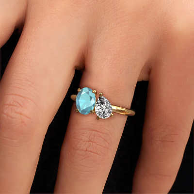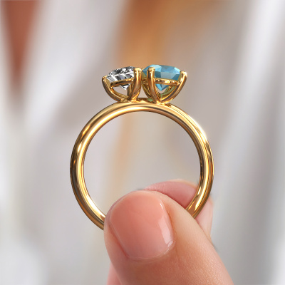 Dieser Verlobungsring aus 14 Karat Gold mit Blau Topas heißt Toi et Moi OVL-PER. Halten Sie mit den neuesten Modetrends Schritt? Möchten Sie einen einzigartigen Verlobungsring, der zu Ihrem Lebensstil passt? Dieser charmant Verlobungsring ist ein außergewöhnlicher Ring, der individuell an Ihren persönlichen Stil angepasst werden kann. Dieser modische, Gold Verlobungsring ist mit Blaue Topas besetzt. Diese Blaue Topas werden sorgfältig für diesen speziellen Ring ausgewählt, um mit ihm den besten Effekt zu erzielen. Unser erfahrener Juwelier kreiert Ihren Ring in unserem eigenen Studio, wo der Blau Topas mit großer Sorgfalt eingefasst wird. Der Ring wird dann bis zur Perfektion bearbeitet und poliert. Nichts als das Beste für die Liebe Ihres Lebens! Jedes Schmuckstück wird von unseren Meister-Goldschmieden in unserem eigenen Studio für Sie gefertigt.Mit unserer modernen Technik können wir Schmuckstücke von höchster Qualität mit größter Sorgfalt für Sie entwerfen und anpassen. Unsere Verlobungsringe sind immer um 30 Prozent günstiger als bei anderen Juwelieren. Wir fertigen Verlobungsringe auf Bestellung, also müssen wir keine großen Lager unterhalten. Wenn Sie ein bestimmtes Budget haben, beraten wir Sie gerne entsprechend.Haben Sie einen bestimmten Ring im Sinn? Eines, dass Sie irgendwo gesehen haben. Bitte zögern Sie nicht, uns zu sagen, was Sie wollen und wir werden Ihr Design in einen Einzigartigen Verlobungsring verwandeln. Sie können die Entwicklungen Ihres Ringdesigns verfolgen, da wir 3D-Zeichnungen verwenden. Das gibt Ihnen eine realistische Vorschau Ihres Designs. Wir senden Ihnen gerne ein unverbindliches Angebot zu einem fairen Preis/Leistungsverhältnis. Es wird Sie erstaunen.Um es einfacher zu machen, bieten wir eine kostenlose 30-tägige Rücksendung.
