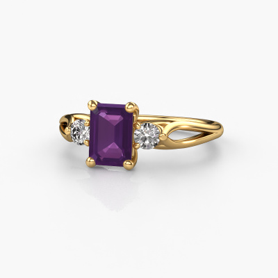 Dieser Ring aus 14 Karat Gold heißt Amie EME und hat 7x5 mm Amethyst. Dieser geschmackvolle 14 Karat Gold 3-stone Verlobungsring ist ein wahres Kunstwerk! Die Ornamente werden mit viel Geduld und großer Leidenschaft gefertigt. Um diesen Ring mit großer Präzision zu schaffen, erfordert dieses Handwerk ein scharfes Auge und eine geschickte Hand. Eine Herausforderung, die bei unseren erfahrenen Juwelieren ein Feuer entfacht. Die exquisiten Amethysten sind auf eine besondere Art und Weise gefasst, so dass sie noch mehr hervorstechen. Dies verleiht dem Ring eine noch glamourösere Erscheinung. Der Ring an sich ist schon wegen der Edelsteine einzigartig, die wir speziell für diesen Ring auswählen. Obendrein wählen Sie die Edelmetalle aus, mit denen Ihr einzigartiger Ring für die außergewöhnlichste Frau Ihres Lebens gemacht wird! Jedes Schmuckstück lässt Ihren Finger erstrahlen. Ihr Ring ist mit Liebe von unseren Goldschmieden handgefertigt.Haben Sie ein bestimmtes Budget? Sie können uns gerne kontaktieren, damit wir Ihre Optionen besprechen können. Wir bieten unsere Verlobungsringe zum garantiert besten Preis, denn wir fertigen sie auf Bestellung. Solche Preise finden Sie nirgendwo anders!Unser Team fügt unserer Online-Kollektion täglich neue Designs hinzu. Unsere Designer und Goldschmiede arbeiten zusammen, um das beste Design zu kreieren. Wir bemühen uns, eine vielfältige Kollektion von Schmuckstücken anzubieten. Vielleicht haben Sie ein bestimmtes Design im Sinn. Eines, dass Sie irgendwo gesehen haben. Gerne geben wir Ihnen eine kostenlose Beratung. Wir machen Ihnen ein Angebot, basierend auf einem fairen Preis/Leistungsverhältnis, das Sie verblüffen wird.Um es einfacher zu machen, bieten wir eine kostenlose 30-tägige Rücksendung.