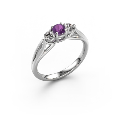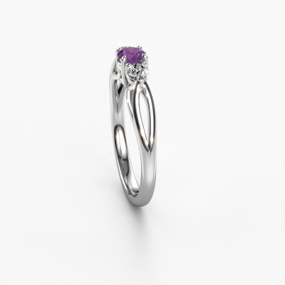 Dieser Ring aus 14 Karat Weißgold heißt Amie RND und hat 4.2 mm Amethyst. Dieser zierliche 14 Karat Weißgold 3-stone Verlobungsring ist ein wahres Kunstwerk! Die Ornamente werden mit viel Geduld und großer Leidenschaft gefertigt. Um diesen Ring mit großer Präzision zu schaffen, erfordert dieses Handwerk ein scharfes Auge und eine geschickte Hand. Eine Herausforderung, die bei unseren erfahrenen Juwelieren ein Feuer entfacht. Die exquisiten Amethysten sind auf eine besondere Art und Weise gefasst, so dass sie noch mehr hervorstechen. Dies verleiht dem Ring eine noch glamourösere Erscheinung. Der Ring an sich ist schon wegen der Edelsteine einzigartig, die wir speziell für diesen Ring auswählen. Obendrein wählen Sie die Edelmetalle aus, mit denen Ihr einzigartiger Ring für die außergewöhnlichste Frau Ihres Lebens gemacht wird! Jedes Schmuckstück wird hergestellt mit Leidenschaft und Liebe, von einem unserer Meister-Goldschmiede.Da wir unsere eigenen Ringe entwerfen und liefern, können wir Ihnen einen Verlobungsring zu einem Preis anbieten, den Sie nirgendwo anders finden. Ein Ring wird auf Bestellung angefertigt, wodurch kein überschüssiges Material anfällt. So können wir Ihnen ein gutes Angebot zum besten Preis machen. Wir verstehen, dass es sich riskant anfühlt, Ihren Verlobungsring online zu kaufen. Jedoch helfen wir Ihnen gerne beim Designprozess unter Berücksichtigung Ihres Budgets.Unsere Designer und Goldschmiede arbeiten jeden Tag zusammen und versuchen, neue Schmuckstücke zu kreieren. Vielleicht haben Sie irgendwo einen schönen, klassische Verlobungsring gefunden, nach dem Ihr einzigartiger Ring gestaltet werden kann. Setzen Sie sich mit uns in Verbindung. Wir machen Ihnen ein Angebot, basierend auf einem fairen Preis/Leistungsverhältnis, das Sie begeistern wird.Um es einfacher zu machen, bieten wir eine kostenlose 30-tägige Rücksendung.