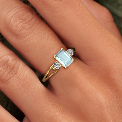 Dieser Ring aus 14 Karat Gold heißt Amie EME und hat 7x5 mm Aquamarin. Dieser geschmackvolle 14 Karat Gold 3-stone Verlobungsring ist ein wahres Kunstwerk! Die Ornamente werden mit viel Geduld und großer Leidenschaft gefertigt. Um diesen Ring mit großer Präzision zu schaffen, erfordert dieses Handwerk ein scharfes Auge und eine geschickte Hand. Eine Herausforderung, die bei unseren erfahrenen Juwelieren ein Feuer entfacht. Die exquisiten Aquamarins sind auf eine besondere Art und Weise gefasst, so dass sie noch mehr hervorstechen. Dies verleiht dem Ring eine noch glamourösere Erscheinung. Der Ring an sich ist schon wegen der Edelsteine einzigartig, die wir speziell für diesen Ring auswählen. Obendrein wählen Sie die Edelmetalle aus, mit denen Ihr einzigartiger Ring für die außergewöhnlichste Frau Ihres Lebens gemacht wird! Jedes Schmuckstück lässt Ihren Finger erstrahlen. Ihr Ring ist mit Liebe von unseren Goldschmieden handgefertigt.Haben Sie ein bestimmtes Budget? Sie können uns gerne kontaktieren, damit wir Ihre Optionen besprechen können. Wir bieten unsere Verlobungsringe zum garantiert besten Preis, denn wir fertigen sie auf Bestellung. Solche Preise finden Sie nirgendwo anders!Unser Team fügt unserer Online-Kollektion täglich neue Designs hinzu. Unsere Designer und Goldschmiede arbeiten zusammen, um das beste Design zu kreieren. Wir bemühen uns, eine vielfältige Kollektion von Schmuckstücken anzubieten. Vielleicht haben Sie ein bestimmtes Design im Sinn. Eines, dass Sie irgendwo gesehen haben. Gerne geben wir Ihnen eine kostenlose Beratung. Wir machen Ihnen ein Angebot, basierend auf einem fairen Preis/Leistungsverhältnis, das Sie verblüffen wird.Um es einfacher zu machen, bieten wir eine kostenlose 30-tägige Rücksendung.
