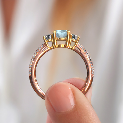 Dieser Ring aus 14 Karat Roségold heißt Marielle RND und hat 6 mm Aquamarin. Dieser geschmackvolle 14 Karat Roségold 3-stone Verlobungsring ist ein wahres Kunstwerk! Die Ornamente werden mit viel Geduld und großer Leidenschaft gefertigt. Um diesen Ring mit großer Präzision zu schaffen, erfordert dieses Handwerk ein scharfes Auge und eine geschickte Hand. Eine Herausforderung, die bei unseren erfahrenen Juwelieren ein Feuer entfacht. Die exquisiten Aquamarins sind auf eine besondere Art und Weise gefasst, so dass sie noch mehr hervorstechen. Dies verleiht dem Ring eine noch glamourösere Erscheinung. Der Ring an sich ist schon wegen der Edelsteine einzigartig, die wir speziell für diesen Ring auswählen. Obendrein wählen Sie die Edelmetalle aus, mit denen Ihr einzigartiger Ring für die außergewöhnlichste Frau Ihres Lebens gemacht wird! Jedes Schmuckstück wird hergestellt mit Leidenschaft und Liebe, von einem unserer Meister-Goldschmiede.Durch die Kombination modernster Technik mit uralter Handwerkskunst können wir alle Verlobungsringe in unserem eigenen Studio anfertigen. Jedes Schmuckstück wird auf Anfrage gefertigt. Das ist vorteilhaft, weil wir Ihnen dadurch einen Preis anbieten können, den Sie nirgendwo anders finden.Unsere Designer und Goldschmiede arbeiten jeden Tag zusammen und versuchen, neue Schmuckstücke zu kreieren. Vielleicht haben Sie irgendwo einen schönen, exklusive Verlobungsring gefunden, nach dem Ihr einzigartiger Ring gestaltet werden kann. Setzen Sie sich mit uns in Verbindung. Wir machen Ihnen ein Angebot, basierend auf einem fairen Preis/Leistungsverhältnis, das Sie begeistern wird.Um es einfacher zu machen, bieten wir eine kostenlose 30-tägige Rücksendung.