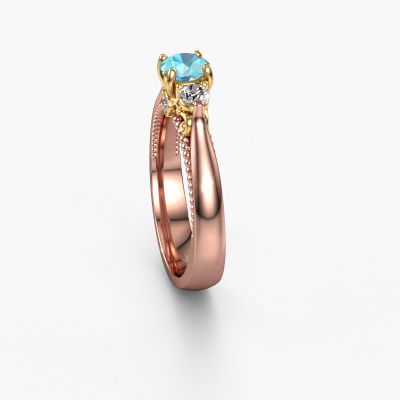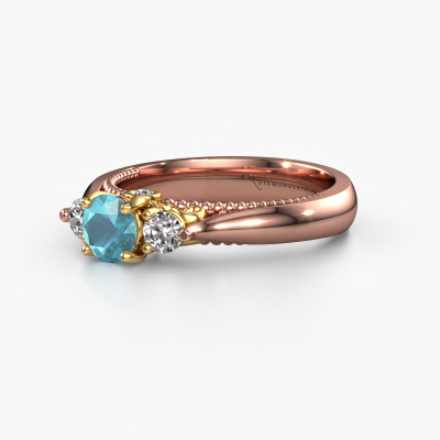Dieser Ring aus 14 Karat Roségold heißt Tiffani und hat 5 mm Blau Topas. Dieser ajour 14 Karat Roségold 3-stone Verlobungsring ist ein wahres Kunstwerk! Die Ornamente werden mit viel Geduld und großer Leidenschaft gefertigt. Um diesen Ring mit großer Präzision zu schaffen, erfordert dieses Handwerk ein scharfes Auge und eine geschickte Hand. Eine Herausforderung, die bei unseren erfahrenen Juwelieren ein Feuer entfacht. Die exquisiten Blaue Topas sind auf eine besondere Art und Weise gefasst, so dass sie noch mehr hervorstechen. Dies verleiht dem Ring eine noch glamourösere Erscheinung. Der Ring an sich ist schon wegen der Edelsteine einzigartig, die wir speziell für diesen Ring auswählen. Obendrein wählen Sie die Edelmetalle aus, mit denen Ihr einzigartiger Ring für die außergewöhnlichste Frau Ihres Lebens gemacht wird! Jedes Schmuckstück wird von unseren Meister-Goldschmieden in unserem eigenen Studio für Sie gefertigt.Nach Erhalt Ihrer Bestellung beginnen unsere Goldschmiede mit Leidenschaft den kreativen Prozess und fertigen Ihren Verlobungsring in unserem eigenen Studio. Da wir keine großen Lager haben, werden diese Kosten nicht an Sie weitergegeben. Unsere Preisgestaltung ist der Beweis dafür! Wir bieten Schmuck zum niedrigsten Preis, garantiert.Haben Sie irgendwo einen bestimmten Verlobungsring gefunden, den Sie Ihrem Liebsten schenken möchten? Sie können uns gerne sagen, was Sie wollen und wir werden Ihr Design in einen Einzigartigen einzigartige Verlobungsring verwandeln. Sie können die Entwicklungen Ihres Ringdesigns verfolgen, da wir 3D-Zeichnungen verwenden. Das gibt Ihnen eine realistische Vorschau, wie Ihr Design aussehen wird. Sie können auch einen Dummy vorbestellen. Ein Dummy ist ein Kunststoffring, der nach Ihrem Ringdesign gestaltet werden kann. Sie können ihn anprobieren und prüfen, ob seine Breite und Größe für Sie geeignet sind. Wir senden Ihnen gerne ein unverbindliches Angebot zu einem fairen Preis/Leistungsverhältnis. Sie werden in Anbetracht der Qualität des Rings und der Edelsteine überrascht sein.Um es einfacher zu machen, bieten wir eine kostenlose 30-tägige Rücksendung.