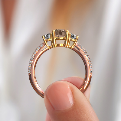 Dieser Ring aus 14 Karat Roségold heißt Marielle RND und hat 1.47 crt Braun Diamant. Dieser geschmackvolle 14 Karat Roségold 3-stone Verlobungsring ist ein wahres Kunstwerk! Die Ornamente werden mit viel Geduld und großer Leidenschaft gefertigt. Um diesen Ring mit großer Präzision zu schaffen, erfordert dieses Handwerk ein scharfes Auge und eine geschickte Hand. Eine Herausforderung, die bei unseren erfahrenen Juwelieren ein Feuer entfacht. Die exquisiten Braune Diamanten sind auf eine besondere Art und Weise gefasst, so dass sie noch mehr hervorstechen. Dies verleiht dem Ring eine noch glamourösere Erscheinung. Der Ring an sich ist schon wegen der Edelsteine einzigartig, die wir speziell für diesen Ring auswählen. Obendrein wählen Sie die Edelmetalle aus, mit denen Ihr einzigartiger Ring für die außergewöhnlichste Frau Ihres Lebens gemacht wird! Jedes Schmuckstück wird hergestellt mit Leidenschaft und Liebe, von einem unserer Meister-Goldschmiede.Durch die Kombination modernster Technik mit uralter Handwerkskunst können wir alle Verlobungsringe in unserem eigenen Studio anfertigen. Jedes Schmuckstück wird auf Anfrage gefertigt. Das ist vorteilhaft, weil wir Ihnen dadurch einen Preis anbieten können, den Sie nirgendwo anders finden.Unsere Designer und Goldschmiede arbeiten jeden Tag zusammen und versuchen, neue Schmuckstücke zu kreieren. Vielleicht haben Sie irgendwo einen schönen, exklusive Verlobungsring gefunden, nach dem Ihr einzigartiger Ring gestaltet werden kann. Setzen Sie sich mit uns in Verbindung. Wir machen Ihnen ein Angebot, basierend auf einem fairen Preis/Leistungsverhältnis, das Sie begeistern wird.Um es einfacher zu machen, bieten wir eine kostenlose 30-tägige Rücksendung.