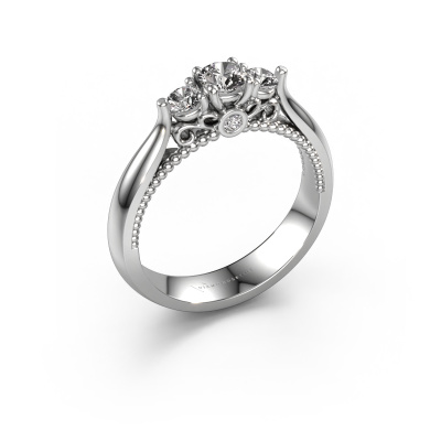 Dieser Ring aus Platin heißt Tiffani und hat 0.49 crt Diamant. Dieser ajour Platin 3-stone Verlobungsring ist ein wahres Kunstwerk! Die Ornamente werden mit viel Geduld und großer Leidenschaft gefertigt. Um diesen Ring mit großer Präzision zu schaffen, erfordert dieses Handwerk ein scharfes Auge und eine geschickte Hand. Eine Herausforderung, die bei unseren erfahrenen Juwelieren ein Feuer entfacht. Die exquisiten Diamanten sind auf eine besondere Art und Weise gefasst, so dass sie noch mehr hervorstechen. Dies verleiht dem Ring eine noch glamourösere Erscheinung. Der Ring an sich ist schon wegen der Edelsteine einzigartig, die wir speziell für diesen Ring auswählen. Obendrein wählen Sie die Edelmetalle aus, mit denen Ihr einzigartiger Ring für die außergewöhnlichste Frau Ihres Lebens gemacht wird! Jedes Schmuckstück wird von unseren Meister-Goldschmieden in unserem eigenen Studio für Sie gefertigt.Nach Erhalt Ihrer Bestellung beginnen unsere Goldschmiede mit Leidenschaft den kreativen Prozess und fertigen Ihren Verlobungsring in unserem eigenen Studio. Da wir keine großen Lager haben, werden diese Kosten nicht an Sie weitergegeben. Unsere Preisgestaltung ist der Beweis dafür! Wir bieten Schmuck zum niedrigsten Preis, garantiert.Haben Sie irgendwo einen bestimmten Verlobungsring gefunden, den Sie Ihrem Liebsten schenken möchten? Sie können uns gerne sagen, was Sie wollen und wir werden Ihr Design in einen Einzigartigen einzigartige Verlobungsring verwandeln. Sie können die Entwicklungen Ihres Ringdesigns verfolgen, da wir 3D-Zeichnungen verwenden. Das gibt Ihnen eine realistische Vorschau, wie Ihr Design aussehen wird. Sie können auch einen Dummy vorbestellen. Ein Dummy ist ein Kunststoffring, der nach Ihrem Ringdesign gestaltet werden kann. Sie können ihn anprobieren und prüfen, ob seine Breite und Größe für Sie geeignet sind. Wir senden Ihnen gerne ein unverbindliches Angebot zu einem fairen Preis/Leistungsverhältnis. Sie werden in Anbetracht der Qualität des Rings und der Edelsteine überrascht sein.Um es einfacher zu machen, bieten wir eine kostenlose 30-tägige Rücksendung.