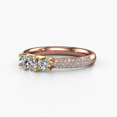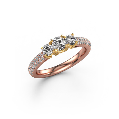 Dieser Ring aus 14 Karat Roségold heißt Marielle RND und hat 0.97 crt Diamant. Dieser geschmackvolle 14 Karat Roségold 3-stone Verlobungsring ist ein wahres Kunstwerk! Die Ornamente werden mit viel Geduld und großer Leidenschaft gefertigt. Um diesen Ring mit großer Präzision zu schaffen, erfordert dieses Handwerk ein scharfes Auge und eine geschickte Hand. Eine Herausforderung, die bei unseren erfahrenen Juwelieren ein Feuer entfacht. Die exquisiten Diamanten sind auf eine besondere Art und Weise gefasst, so dass sie noch mehr hervorstechen. Dies verleiht dem Ring eine noch glamourösere Erscheinung. Der Ring an sich ist schon wegen der Edelsteine einzigartig, die wir speziell für diesen Ring auswählen. Obendrein wählen Sie die Edelmetalle aus, mit denen Ihr einzigartiger Ring für die außergewöhnlichste Frau Ihres Lebens gemacht wird! Jedes Schmuckstück wird hergestellt mit Leidenschaft und Liebe, von einem unserer Meister-Goldschmiede.Durch die Kombination modernster Technik mit uralter Handwerkskunst können wir alle Verlobungsringe in unserem eigenen Studio anfertigen. Jedes Schmuckstück wird auf Anfrage gefertigt. Das ist vorteilhaft, weil wir Ihnen dadurch einen Preis anbieten können, den Sie nirgendwo anders finden.Unsere Designer und Goldschmiede arbeiten jeden Tag zusammen und versuchen, neue Schmuckstücke zu kreieren. Vielleicht haben Sie irgendwo einen schönen, exklusive Verlobungsring gefunden, nach dem Ihr einzigartiger Ring gestaltet werden kann. Setzen Sie sich mit uns in Verbindung. Wir machen Ihnen ein Angebot, basierend auf einem fairen Preis/Leistungsverhältnis, das Sie begeistern wird.Um es einfacher zu machen, bieten wir eine kostenlose 30-tägige Rücksendung.