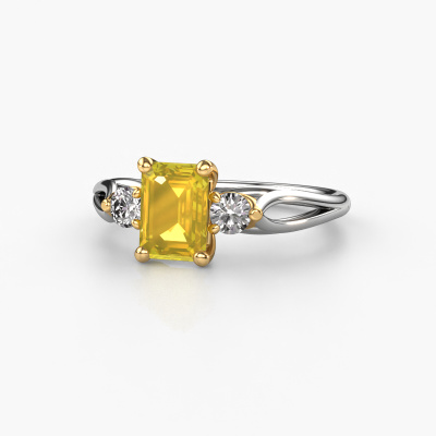 Dieser Ring aus 14 Karat Weißgold heißt Amie EME und hat 7x5 mm Gelb Saphir. Dieser geschmackvolle 14 Karat Weißgold 3-stone Verlobungsring ist ein wahres Kunstwerk! Die Ornamente werden mit viel Geduld und großer Leidenschaft gefertigt. Um diesen Ring mit großer Präzision zu schaffen, erfordert dieses Handwerk ein scharfes Auge und eine geschickte Hand. Eine Herausforderung, die bei unseren erfahrenen Juwelieren ein Feuer entfacht. Die exquisiten Gelb Saphir sind auf eine besondere Art und Weise gefasst, so dass sie noch mehr hervorstechen. Dies verleiht dem Ring eine noch glamourösere Erscheinung. Der Ring an sich ist schon wegen der Edelsteine einzigartig, die wir speziell für diesen Ring auswählen. Obendrein wählen Sie die Edelmetalle aus, mit denen Ihr einzigartiger Ring für die außergewöhnlichste Frau Ihres Lebens gemacht wird! Jedes Schmuckstück lässt Ihren Finger erstrahlen. Ihr Ring ist mit Liebe von unseren Goldschmieden handgefertigt.Haben Sie ein bestimmtes Budget? Sie können uns gerne kontaktieren, damit wir Ihre Optionen besprechen können. Wir bieten unsere Verlobungsringe zum garantiert besten Preis, denn wir fertigen sie auf Bestellung. Solche Preise finden Sie nirgendwo anders!Unser Team fügt unserer Online-Kollektion täglich neue Designs hinzu. Unsere Designer und Goldschmiede arbeiten zusammen, um das beste Design zu kreieren. Wir bemühen uns, eine vielfältige Kollektion von Schmuckstücken anzubieten. Vielleicht haben Sie ein bestimmtes Design im Sinn. Eines, dass Sie irgendwo gesehen haben. Gerne geben wir Ihnen eine kostenlose Beratung. Wir machen Ihnen ein Angebot, basierend auf einem fairen Preis/Leistungsverhältnis, das Sie verblüffen wird.Um es einfacher zu machen, bieten wir eine kostenlose 30-tägige Rücksendung.