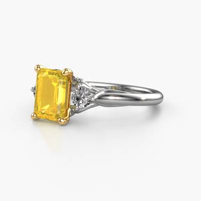 Dieser Ring aus 14 Karat Weißgold heißt Laurian EME und hat 8x6 mm Gelb Saphir. Dieser besondere 14 Karat Weißgold 3-stone Verlobungsring ist ein wahres Kunstwerk! Die Ornamente werden mit viel Geduld und großer Leidenschaft gefertigt. Um diesen Ring mit großer Präzision zu schaffen, erfordert dieses Handwerk ein scharfes Auge und eine geschickte Hand. Eine Herausforderung, die bei unseren erfahrenen Juwelieren ein Feuer entfacht. Die exquisiten Gelb Saphir sind auf eine besondere Art und Weise gefasst, so dass sie noch mehr hervorstechen. Dies verleiht dem Ring eine noch glamourösere Erscheinung. Der Ring an sich ist schon wegen der Edelsteine einzigartig, die wir speziell für diesen Ring auswählen. Obendrein wählen Sie die Edelmetalle aus, mit denen Ihr einzigartiger Ring für die außergewöhnlichste Frau Ihres Lebens gemacht wird! Jedes Schmuckstück ist einzigartig in jeder Hinsicht! Einfach nach Ihren Wünschen anzupassen.Durch die Kombination modernster Technik mit uralter Handwerkskunst können wir alle Verlobungsringe in unserem eigenen Studio anfertigen. Jedes Schmuckstück wird auf Anfrage gefertigt. Das ist vorteilhaft, weil wir Ihnen dadurch einen Preis anbieten können, den Sie nirgendwo anders finden.Unser Team fügt unserer Online-Kollektion täglich neue Designs hinzu. Unsere Designer und Goldschmiede arbeiten zusammen, um das beste Design zu kreieren. Wir bemühen uns, eine vielfältige Kollektion von Schmuckstücken anzubieten. Vielleicht haben Sie ein bestimmtes Design im Sinn. Eines, dass Sie irgendwo gesehen haben. Gerne geben wir Ihnen eine kostenlose Beratung. Wir machen Ihnen ein Angebot, basierend auf einem fairen Preis/Leistungsverhältnis, das Sie verblüffen wird.Um es einfacher zu machen, bieten wir eine kostenlose 30-tägige Rücksendung.