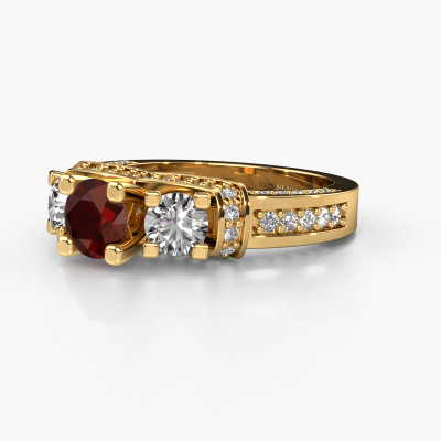 Dieser Ring aus 14 Karat Gold heißt Phileine und hat 5 mm Granat. Dieser gewagte 14 Karat Gold 3-stone Verlobungsring ist ein wahres Kunstwerk! Die Ornamente werden mit viel Geduld und großer Leidenschaft gefertigt. Um diesen Ring mit großer Präzision zu schaffen, erfordert dieses Handwerk ein scharfes Auge und eine geschickte Hand. Eine Herausforderung, die bei unseren erfahrenen Juwelieren ein Feuer entfacht. Die exquisiten Granat sind auf eine besondere Art und Weise gefasst, so dass sie noch mehr hervorstechen. Dies verleiht dem Ring eine noch glamourösere Erscheinung. Der Ring an sich ist schon wegen der Edelsteine einzigartig, die wir speziell für diesen Ring auswählen. Obendrein wählen Sie die Edelmetalle aus, mit denen Ihr einzigartiger Ring für die außergewöhnlichste Frau Ihres Lebens gemacht wird! Jedes Schmuckstück wird hergestellt mit Leidenschaft und Liebe, von einem unserer Meister-Goldschmiede.Nach Erhalt Ihrer Bestellung beginnen unsere Goldschmiede mit Leidenschaft den kreativen Prozess und fertigen Ihren Verlobungsring in unserem eigenen Studio. Da wir keine großen Lager haben, werden diese Kosten nicht an Sie weitergegeben. Unsere Preisgestaltung ist der Beweis dafür! Wir bieten Schmuck zum niedrigsten Preis, garantiert.Verschiedene Arten von neuen Ringen werden täglich von unserem Team angefertigt. Vielleicht haben Sie irgendwo einen 3-stone Verlobungsring gefunden. Einen, den Sie Ihrem Liebsten schenken möchten. Bitte zögern Sie nicht, unseren Schmuckdesignern Ihre Gedanken und Ihr Design zu zeigen. Wir würden gerne Ihr Design in einen exklusive Verlobungsring verwandeln. Sie können die Entwicklungen Ihres Ringdesigns verfolgen, da wir sehr detaillierte 3D-Zeichnungen verwenden. Darüber hinaus können Sie einen Dummy des Designs bestellen. Ein Dummy ist ein Kunststoffring, der nach Ihrem Ringdesign gestaltet werden kann. Sie können ihn anprobieren und prüfen, ob der Verlobungsring Ihren Vorstellungen entspricht. Wir senden Ihnen gerne ein unverbindliches Angebot zu einem fairen Preis/Leistungsverhältnis. Das Angebot wird Sie angesichts der Qualität des Rings und der Edelsteine verblüffen.Um es einfacher zu machen, bieten wir eine kostenlose 30-tägige Rücksendung.