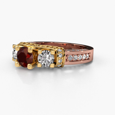Dieser Ring aus 14 Karat Roségold heißt Phileine und hat 5 mm Granat. Dieser gewagte 14 Karat Roségold 3-stone Verlobungsring ist ein wahres Kunstwerk! Die Ornamente werden mit viel Geduld und großer Leidenschaft gefertigt. Um diesen Ring mit großer Präzision zu schaffen, erfordert dieses Handwerk ein scharfes Auge und eine geschickte Hand. Eine Herausforderung, die bei unseren erfahrenen Juwelieren ein Feuer entfacht. Die exquisiten Granat sind auf eine besondere Art und Weise gefasst, so dass sie noch mehr hervorstechen. Dies verleiht dem Ring eine noch glamourösere Erscheinung. Der Ring an sich ist schon wegen der Edelsteine einzigartig, die wir speziell für diesen Ring auswählen. Obendrein wählen Sie die Edelmetalle aus, mit denen Ihr einzigartiger Ring für die außergewöhnlichste Frau Ihres Lebens gemacht wird! Jedes Schmuckstück wird hergestellt mit Leidenschaft und Liebe, von einem unserer Meister-Goldschmiede.Nach Erhalt Ihrer Bestellung beginnen unsere Goldschmiede mit Leidenschaft den kreativen Prozess und fertigen Ihren Verlobungsring in unserem eigenen Studio. Da wir keine großen Lager haben, werden diese Kosten nicht an Sie weitergegeben. Unsere Preisgestaltung ist der Beweis dafür! Wir bieten Schmuck zum niedrigsten Preis, garantiert.Verschiedene Arten von neuen Ringen werden täglich von unserem Team angefertigt. Vielleicht haben Sie irgendwo einen 3-stone Verlobungsring gefunden. Einen, den Sie Ihrem Liebsten schenken möchten. Bitte zögern Sie nicht, unseren Schmuckdesignern Ihre Gedanken und Ihr Design zu zeigen. Wir würden gerne Ihr Design in einen exklusive Verlobungsring verwandeln. Sie können die Entwicklungen Ihres Ringdesigns verfolgen, da wir sehr detaillierte 3D-Zeichnungen verwenden. Darüber hinaus können Sie einen Dummy des Designs bestellen. Ein Dummy ist ein Kunststoffring, der nach Ihrem Ringdesign gestaltet werden kann. Sie können ihn anprobieren und prüfen, ob der Verlobungsring Ihren Vorstellungen entspricht. Wir senden Ihnen gerne ein unverbindliches Angebot zu einem fairen Preis/Leistungsverhältnis. Das Angebot wird Sie angesichts der Qualität des Rings und der Edelsteine verblüffen.Um es einfacher zu machen, bieten wir eine kostenlose 30-tägige Rücksendung.