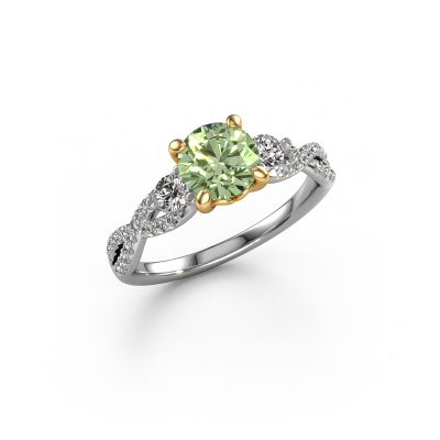 Dieser Ring aus 14 Karat Weißgold heißt Marilou RND und hat 6.5 mm grüner Labor-Diamant. Dieser gespaltene Bänder 14 Karat Weißgold 3-stone Verlobungsring ist ein wahres Kunstwerk! Die Ornamente werden mit viel Geduld und großer Leidenschaft gefertigt. Um diesen Ring mit großer Präzision zu schaffen, erfordert dieses Handwerk ein scharfes Auge und eine geschickte Hand. Eine Herausforderung, die bei unseren erfahrenen Juwelieren ein Feuer entfacht. Die exquisiten grüner Labor-Diamanten sind auf eine besondere Art und Weise gefasst, so dass sie noch mehr hervorstechen. Dies verleiht dem Ring eine noch glamourösere Erscheinung. Der Ring an sich ist schon wegen der Edelsteine einzigartig, die wir speziell für diesen Ring auswählen. Obendrein wählen Sie die Edelmetalle aus, mit denen Ihr einzigartiger Ring für die außergewöhnlichste Frau Ihres Lebens gemacht wird! Jedes Schmuckstück wird nur für Sie persönlich hergestellt, mit Liebe zum Detail und Design.Haben Sie ein bestimmtes Budget? Sie können uns gerne kontaktieren, damit wir Ihre Optionen besprechen können. Wir bieten unsere Verlobungsringe zum garantiert besten Preis, denn wir fertigen sie auf Bestellung. Solche Preise finden Sie nirgendwo anders!Haben Sie irgendwo einen bestimmten Verlobungsring gefunden, den Sie Ihrem Liebsten schenken möchten? Sie können uns gerne sagen, was Sie wollen und wir werden Ihr Design in einen Einzigartigen Fantasie Verlobungsring verwandeln. Sie können die Entwicklungen Ihres Ringdesigns verfolgen, da wir 3D-Zeichnungen verwenden. Das gibt Ihnen eine realistische Vorschau, wie Ihr Design aussehen wird. Sie können auch einen Dummy vorbestellen. Ein Dummy ist ein Kunststoffring, der nach Ihrem Ringdesign gestaltet werden kann. Sie können ihn anprobieren und prüfen, ob seine Breite und Größe für Sie geeignet sind. Wir senden Ihnen gerne ein unverbindliches Angebot zu einem fairen Preis/Leistungsverhältnis. Sie werden in Anbetracht der Qualität des Rings und der Edelsteine überrascht sein.Um es einfacher zu machen, bieten wir eine kostenlose 30-tägige Rücksendung.