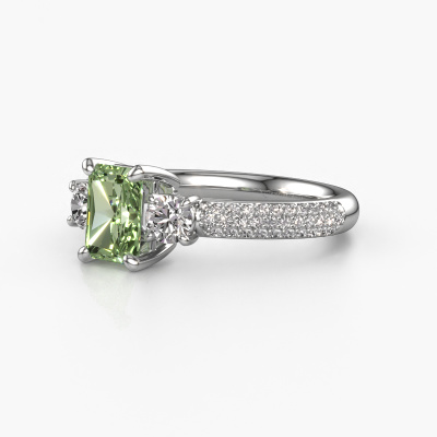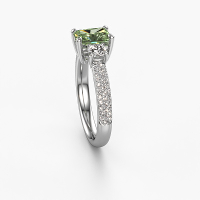 Dieser Ring aus 14 Karat Weißgold heißt Marielle RAD und hat 7x5 mm grüner Labor-Diamant. Dieser zierliche 14 Karat Weißgold 3-stone Verlobungsring ist ein wahres Kunstwerk! Die Ornamente werden mit viel Geduld und großer Leidenschaft gefertigt. Um diesen Ring mit großer Präzision zu schaffen, erfordert dieses Handwerk ein scharfes Auge und eine geschickte Hand. Eine Herausforderung, die bei unseren erfahrenen Juwelieren ein Feuer entfacht. Die exquisiten grüner Labor-Diamanten sind auf eine besondere Art und Weise gefasst, so dass sie noch mehr hervorstechen. Dies verleiht dem Ring eine noch glamourösere Erscheinung. Der Ring an sich ist schon wegen der Edelsteine einzigartig, die wir speziell für diesen Ring auswählen. Obendrein wählen Sie die Edelmetalle aus, mit denen Ihr einzigartiger Ring für die außergewöhnlichste Frau Ihres Lebens gemacht wird! Jedes Schmuckstück ist um Ihrem Finger Glanz zu verleihen. Jeder Ring wird von unseren Goldschmieden liebevoll von Hand gefertigt.Durch die Kombination modernster Technik mit uralter Handwerkskunst können wir alle Verlobungsringe in unserem eigenen Studio anfertigen. Jedes Schmuckstück wird auf Anfrage gefertigt. Das ist vorteilhaft, weil wir Ihnen dadurch einen Preis anbieten können, den Sie nirgendwo anders finden.Verschiedene Arten von neuen Ringen werden täglich von unserem Team angefertigt. Vielleicht haben Sie irgendwo einen 3-stone Verlobungsring gefunden. Einen, den Sie Ihrem Liebsten schenken möchten. Bitte zögern Sie nicht, unseren Schmuckdesignern Ihre Gedanken und Ihr Design zu zeigen. Wir würden gerne Ihr Design in einen moderne Verlobungsring verwandeln. Sie können die Entwicklungen Ihres Ringdesigns verfolgen, da wir sehr detaillierte 3D-Zeichnungen verwenden. Darüber hinaus können Sie einen Dummy des Designs bestellen. Ein Dummy ist ein Kunststoffring, der nach Ihrem Ringdesign gestaltet werden kann. Sie können ihn anprobieren und prüfen, ob der Verlobungsring Ihren Vorstellungen entspricht. Wir senden Ihnen gerne ein unverbindliches Angebot zu einem fairen Preis/Leistungsverhältnis. Das Angebot wird Sie angesichts der Qualität des Rings und der Edelsteine verblüffen.Um es einfacher zu machen, bieten wir eine kostenlose 30-tägige Rücksendung.