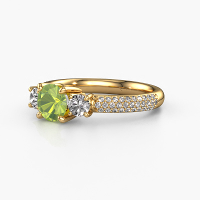 Dieser Ring aus 14 Karat Gold heißt Marielle RND und hat 6 mm Peridot. Dieser geschmackvolle 14 Karat Gold 3-stone Verlobungsring ist ein wahres Kunstwerk! Die Ornamente werden mit viel Geduld und großer Leidenschaft gefertigt. Um diesen Ring mit großer Präzision zu schaffen, erfordert dieses Handwerk ein scharfes Auge und eine geschickte Hand. Eine Herausforderung, die bei unseren erfahrenen Juwelieren ein Feuer entfacht. Die exquisiten Peridot sind auf eine besondere Art und Weise gefasst, so dass sie noch mehr hervorstechen. Dies verleiht dem Ring eine noch glamourösere Erscheinung. Der Ring an sich ist schon wegen der Edelsteine einzigartig, die wir speziell für diesen Ring auswählen. Obendrein wählen Sie die Edelmetalle aus, mit denen Ihr einzigartiger Ring für die außergewöhnlichste Frau Ihres Lebens gemacht wird! Jedes Schmuckstück wird hergestellt mit Leidenschaft und Liebe, von einem unserer Meister-Goldschmiede.Durch die Kombination modernster Technik mit uralter Handwerkskunst können wir alle Verlobungsringe in unserem eigenen Studio anfertigen. Jedes Schmuckstück wird auf Anfrage gefertigt. Das ist vorteilhaft, weil wir Ihnen dadurch einen Preis anbieten können, den Sie nirgendwo anders finden.Unsere Designer und Goldschmiede arbeiten jeden Tag zusammen und versuchen, neue Schmuckstücke zu kreieren. Vielleicht haben Sie irgendwo einen schönen, exklusive Verlobungsring gefunden, nach dem Ihr einzigartiger Ring gestaltet werden kann. Setzen Sie sich mit uns in Verbindung. Wir machen Ihnen ein Angebot, basierend auf einem fairen Preis/Leistungsverhältnis, das Sie begeistern wird.Um es einfacher zu machen, bieten wir eine kostenlose 30-tägige Rücksendung.
