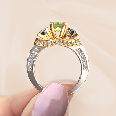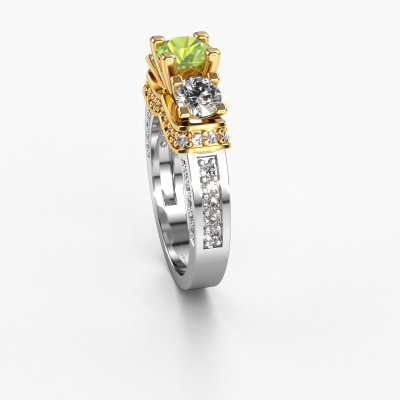 Dieser Ring aus 14 Karat Weißgold heißt Phileine und hat 5 mm Peridot. Dieser gewagte 14 Karat Weißgold 3-stone Verlobungsring ist ein wahres Kunstwerk! Die Ornamente werden mit viel Geduld und großer Leidenschaft gefertigt. Um diesen Ring mit großer Präzision zu schaffen, erfordert dieses Handwerk ein scharfes Auge und eine geschickte Hand. Eine Herausforderung, die bei unseren erfahrenen Juwelieren ein Feuer entfacht. Die exquisiten Peridot sind auf eine besondere Art und Weise gefasst, so dass sie noch mehr hervorstechen. Dies verleiht dem Ring eine noch glamourösere Erscheinung. Der Ring an sich ist schon wegen der Edelsteine einzigartig, die wir speziell für diesen Ring auswählen. Obendrein wählen Sie die Edelmetalle aus, mit denen Ihr einzigartiger Ring für die außergewöhnlichste Frau Ihres Lebens gemacht wird! Jedes Schmuckstück wird hergestellt mit Leidenschaft und Liebe, von einem unserer Meister-Goldschmiede.Nach Erhalt Ihrer Bestellung beginnen unsere Goldschmiede mit Leidenschaft den kreativen Prozess und fertigen Ihren Verlobungsring in unserem eigenen Studio. Da wir keine großen Lager haben, werden diese Kosten nicht an Sie weitergegeben. Unsere Preisgestaltung ist der Beweis dafür! Wir bieten Schmuck zum niedrigsten Preis, garantiert.Verschiedene Arten von neuen Ringen werden täglich von unserem Team angefertigt. Vielleicht haben Sie irgendwo einen 3-stone Verlobungsring gefunden. Einen, den Sie Ihrem Liebsten schenken möchten. Bitte zögern Sie nicht, unseren Schmuckdesignern Ihre Gedanken und Ihr Design zu zeigen. Wir würden gerne Ihr Design in einen exklusive Verlobungsring verwandeln. Sie können die Entwicklungen Ihres Ringdesigns verfolgen, da wir sehr detaillierte 3D-Zeichnungen verwenden. Darüber hinaus können Sie einen Dummy des Designs bestellen. Ein Dummy ist ein Kunststoffring, der nach Ihrem Ringdesign gestaltet werden kann. Sie können ihn anprobieren und prüfen, ob der Verlobungsring Ihren Vorstellungen entspricht. Wir senden Ihnen gerne ein unverbindliches Angebot zu einem fairen Preis/Leistungsverhältnis. Das Angebot wird Sie angesichts der Qualität des Rings und der Edelsteine verblüffen.Um es einfacher zu machen, bieten wir eine kostenlose 30-tägige Rücksendung.