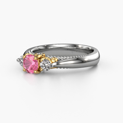 Dieser Ring aus 14 Karat Weißgold heißt Tiffani und hat 5 mm Pink Saphir. Dieser ajour 14 Karat Weißgold 3-stone Verlobungsring ist ein wahres Kunstwerk! Die Ornamente werden mit viel Geduld und großer Leidenschaft gefertigt. Um diesen Ring mit großer Präzision zu schaffen, erfordert dieses Handwerk ein scharfes Auge und eine geschickte Hand. Eine Herausforderung, die bei unseren erfahrenen Juwelieren ein Feuer entfacht. Die exquisiten Pink Saphir sind auf eine besondere Art und Weise gefasst, so dass sie noch mehr hervorstechen. Dies verleiht dem Ring eine noch glamourösere Erscheinung. Der Ring an sich ist schon wegen der Edelsteine einzigartig, die wir speziell für diesen Ring auswählen. Obendrein wählen Sie die Edelmetalle aus, mit denen Ihr einzigartiger Ring für die außergewöhnlichste Frau Ihres Lebens gemacht wird! Jedes Schmuckstück wird von unseren Meister-Goldschmieden in unserem eigenen Studio für Sie gefertigt.Nach Erhalt Ihrer Bestellung beginnen unsere Goldschmiede mit Leidenschaft den kreativen Prozess und fertigen Ihren Verlobungsring in unserem eigenen Studio. Da wir keine großen Lager haben, werden diese Kosten nicht an Sie weitergegeben. Unsere Preisgestaltung ist der Beweis dafür! Wir bieten Schmuck zum niedrigsten Preis, garantiert.Haben Sie irgendwo einen bestimmten Verlobungsring gefunden, den Sie Ihrem Liebsten schenken möchten? Sie können uns gerne sagen, was Sie wollen und wir werden Ihr Design in einen Einzigartigen einzigartige Verlobungsring verwandeln. Sie können die Entwicklungen Ihres Ringdesigns verfolgen, da wir 3D-Zeichnungen verwenden. Das gibt Ihnen eine realistische Vorschau, wie Ihr Design aussehen wird. Sie können auch einen Dummy vorbestellen. Ein Dummy ist ein Kunststoffring, der nach Ihrem Ringdesign gestaltet werden kann. Sie können ihn anprobieren und prüfen, ob seine Breite und Größe für Sie geeignet sind. Wir senden Ihnen gerne ein unverbindliches Angebot zu einem fairen Preis/Leistungsverhältnis. Sie werden in Anbetracht der Qualität des Rings und der Edelsteine überrascht sein.Um es einfacher zu machen, bieten wir eine kostenlose 30-tägige Rücksendung.