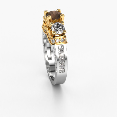 Dieser Ring aus 14 Karat Weißgold heißt Phileine und hat 5 mm Rauchquarz. Dieser gewagte 14 Karat Weißgold 3-stone Verlobungsring ist ein wahres Kunstwerk! Die Ornamente werden mit viel Geduld und großer Leidenschaft gefertigt. Um diesen Ring mit großer Präzision zu schaffen, erfordert dieses Handwerk ein scharfes Auge und eine geschickte Hand. Eine Herausforderung, die bei unseren erfahrenen Juwelieren ein Feuer entfacht. Die exquisiten Rauchquarz sind auf eine besondere Art und Weise gefasst, so dass sie noch mehr hervorstechen. Dies verleiht dem Ring eine noch glamourösere Erscheinung. Der Ring an sich ist schon wegen der Edelsteine einzigartig, die wir speziell für diesen Ring auswählen. Obendrein wählen Sie die Edelmetalle aus, mit denen Ihr einzigartiger Ring für die außergewöhnlichste Frau Ihres Lebens gemacht wird! Jedes Schmuckstück wird hergestellt mit Leidenschaft und Liebe, von einem unserer Meister-Goldschmiede.Nach Erhalt Ihrer Bestellung beginnen unsere Goldschmiede mit Leidenschaft den kreativen Prozess und fertigen Ihren Verlobungsring in unserem eigenen Studio. Da wir keine großen Lager haben, werden diese Kosten nicht an Sie weitergegeben. Unsere Preisgestaltung ist der Beweis dafür! Wir bieten Schmuck zum niedrigsten Preis, garantiert.Verschiedene Arten von neuen Ringen werden täglich von unserem Team angefertigt. Vielleicht haben Sie irgendwo einen 3-stone Verlobungsring gefunden. Einen, den Sie Ihrem Liebsten schenken möchten. Bitte zögern Sie nicht, unseren Schmuckdesignern Ihre Gedanken und Ihr Design zu zeigen. Wir würden gerne Ihr Design in einen exklusive Verlobungsring verwandeln. Sie können die Entwicklungen Ihres Ringdesigns verfolgen, da wir sehr detaillierte 3D-Zeichnungen verwenden. Darüber hinaus können Sie einen Dummy des Designs bestellen. Ein Dummy ist ein Kunststoffring, der nach Ihrem Ringdesign gestaltet werden kann. Sie können ihn anprobieren und prüfen, ob der Verlobungsring Ihren Vorstellungen entspricht. Wir senden Ihnen gerne ein unverbindliches Angebot zu einem fairen Preis/Leistungsverhältnis. Das Angebot wird Sie angesichts der Qualität des Rings und der Edelsteine verblüffen.Um es einfacher zu machen, bieten wir eine kostenlose 30-tägige Rücksendung.