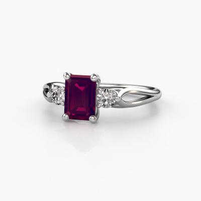 Dieser Ring aus Platin heißt Amie EME und hat 7x5 mm Rhodolit. Dieser geschmackvolle Platin 3-stone Verlobungsring ist ein wahres Kunstwerk! Die Ornamente werden mit viel Geduld und großer Leidenschaft gefertigt. Um diesen Ring mit großer Präzision zu schaffen, erfordert dieses Handwerk ein scharfes Auge und eine geschickte Hand. Eine Herausforderung, die bei unseren erfahrenen Juwelieren ein Feuer entfacht. Die exquisiten Rhodolit sind auf eine besondere Art und Weise gefasst, so dass sie noch mehr hervorstechen. Dies verleiht dem Ring eine noch glamourösere Erscheinung. Der Ring an sich ist schon wegen der Edelsteine einzigartig, die wir speziell für diesen Ring auswählen. Obendrein wählen Sie die Edelmetalle aus, mit denen Ihr einzigartiger Ring für die außergewöhnlichste Frau Ihres Lebens gemacht wird! Jedes Schmuckstück lässt Ihren Finger erstrahlen. Ihr Ring ist mit Liebe von unseren Goldschmieden handgefertigt.Haben Sie ein bestimmtes Budget? Sie können uns gerne kontaktieren, damit wir Ihre Optionen besprechen können. Wir bieten unsere Verlobungsringe zum garantiert besten Preis, denn wir fertigen sie auf Bestellung. Solche Preise finden Sie nirgendwo anders!Unser Team fügt unserer Online-Kollektion täglich neue Designs hinzu. Unsere Designer und Goldschmiede arbeiten zusammen, um das beste Design zu kreieren. Wir bemühen uns, eine vielfältige Kollektion von Schmuckstücken anzubieten. Vielleicht haben Sie ein bestimmtes Design im Sinn. Eines, dass Sie irgendwo gesehen haben. Gerne geben wir Ihnen eine kostenlose Beratung. Wir machen Ihnen ein Angebot, basierend auf einem fairen Preis/Leistungsverhältnis, das Sie verblüffen wird.Um es einfacher zu machen, bieten wir eine kostenlose 30-tägige Rücksendung.