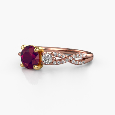 Dieser Ring aus 14 Karat Roségold heißt Marilou RND und hat 6.5 mm Rhodolit. Dieser gespaltene Bänder 14 Karat Roségold 3-stone Verlobungsring ist ein wahres Kunstwerk! Die Ornamente werden mit viel Geduld und großer Leidenschaft gefertigt. Um diesen Ring mit großer Präzision zu schaffen, erfordert dieses Handwerk ein scharfes Auge und eine geschickte Hand. Eine Herausforderung, die bei unseren erfahrenen Juwelieren ein Feuer entfacht. Die exquisiten Rhodolit sind auf eine besondere Art und Weise gefasst, so dass sie noch mehr hervorstechen. Dies verleiht dem Ring eine noch glamourösere Erscheinung. Der Ring an sich ist schon wegen der Edelsteine einzigartig, die wir speziell für diesen Ring auswählen. Obendrein wählen Sie die Edelmetalle aus, mit denen Ihr einzigartiger Ring für die außergewöhnlichste Frau Ihres Lebens gemacht wird! Jedes Schmuckstück wird nur für Sie persönlich hergestellt, mit Liebe zum Detail und Design.Haben Sie ein bestimmtes Budget? Sie können uns gerne kontaktieren, damit wir Ihre Optionen besprechen können. Wir bieten unsere Verlobungsringe zum garantiert besten Preis, denn wir fertigen sie auf Bestellung. Solche Preise finden Sie nirgendwo anders!Haben Sie irgendwo einen bestimmten Verlobungsring gefunden, den Sie Ihrem Liebsten schenken möchten? Sie können uns gerne sagen, was Sie wollen und wir werden Ihr Design in einen Einzigartigen Fantasie Verlobungsring verwandeln. Sie können die Entwicklungen Ihres Ringdesigns verfolgen, da wir 3D-Zeichnungen verwenden. Das gibt Ihnen eine realistische Vorschau, wie Ihr Design aussehen wird. Sie können auch einen Dummy vorbestellen. Ein Dummy ist ein Kunststoffring, der nach Ihrem Ringdesign gestaltet werden kann. Sie können ihn anprobieren und prüfen, ob seine Breite und Größe für Sie geeignet sind. Wir senden Ihnen gerne ein unverbindliches Angebot zu einem fairen Preis/Leistungsverhältnis. Sie werden in Anbetracht der Qualität des Rings und der Edelsteine überrascht sein.Um es einfacher zu machen, bieten wir eine kostenlose 30-tägige Rücksendung.